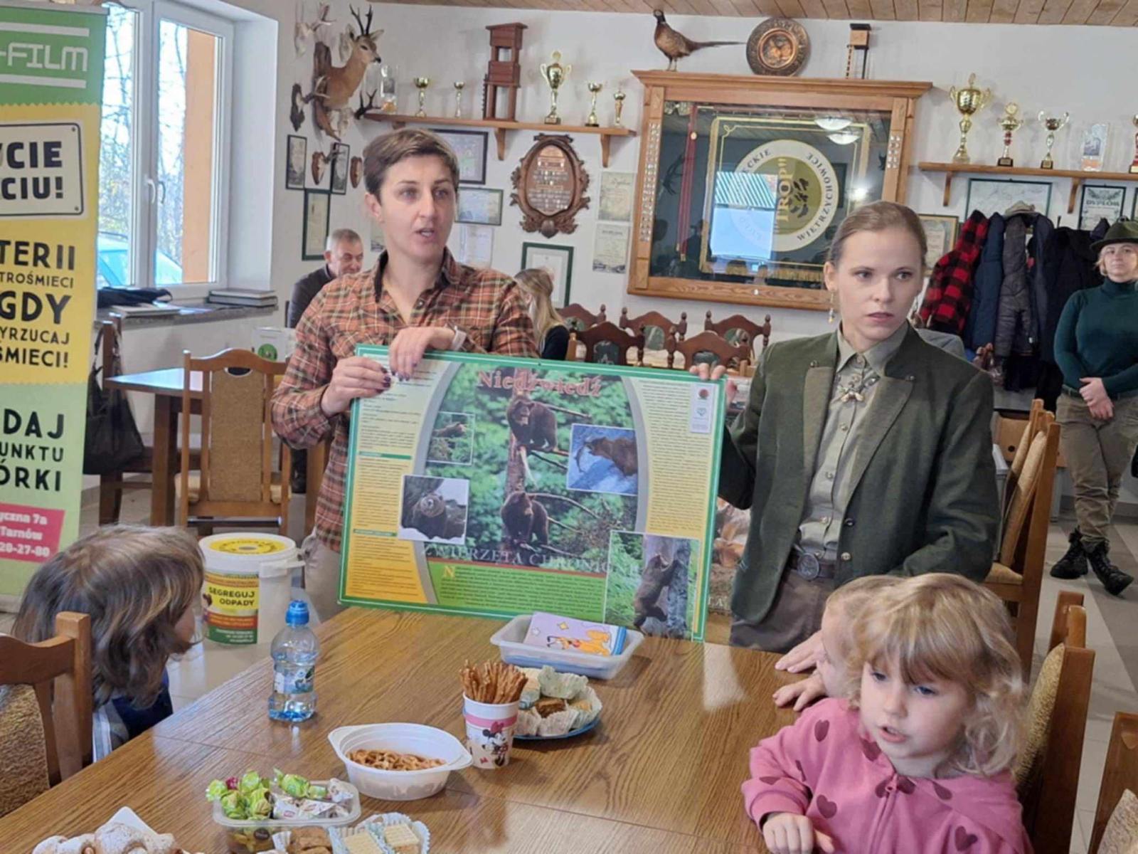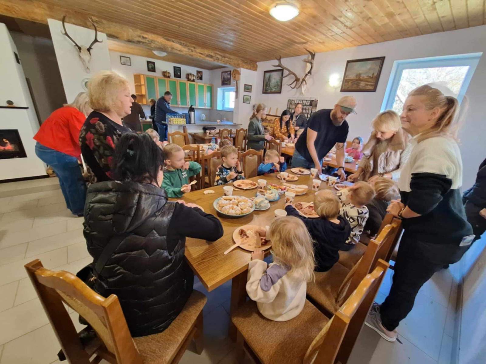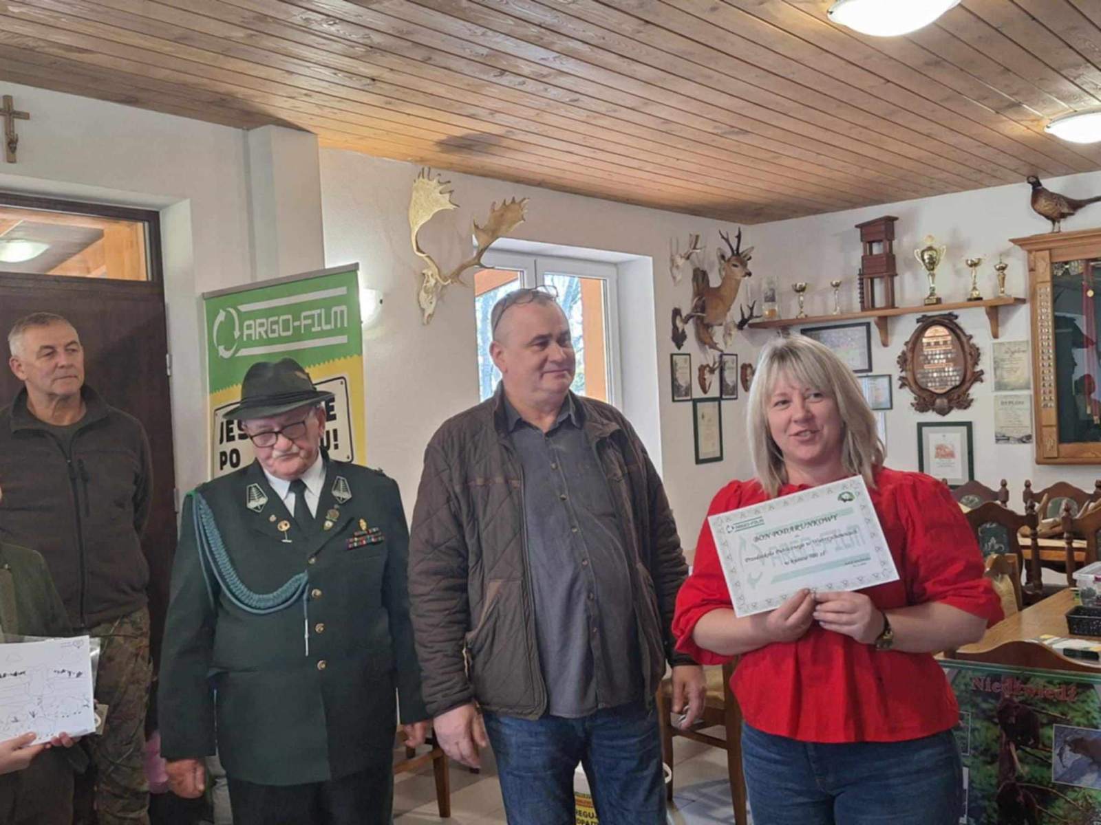 W dniu 6 listopada z inicjatywy Rodziców z grupy „Promyczki” Przedszkola Publicznego w Wietrzychowicach dzieci wraz z opiekunami odbyły niecodzienną wycieczkę do Domu Myśliwych w Dębowych Domach. Wnętrze domku zachwyciło wszystkich pięknym wystrojem; ściany ozdobione porożami zwierząt, ciepło płonącego drewna w kominku. Na nasz przyjazd oczekiwał łowczy pan Marcin Gwóźdź ze swoim wiernym towarzyszem psem Aresem. Prezes Koła Łowieckiegi „Trop” w swoim odświętnym stroju rozpoczął spotkanie tradycyjnym myśliwskim pozdrowieniem „Darz Bór”. Wyjaśnił dzieciom znaczenie tych słów oraz poinformował czym zajmują się myśliwi. Z kolei głos zabrała pani Agata Damska-Guła. Opowiedziała krótko historię myślistwa, którą dzieci z zainteresowaniem wysłuchały. Następnie pani z Zarządu Okręgowego Polskiego Związku Łowiectwa w Tarnowie prezentując tablice edukacyjne przeprowadziła w ciekawy sposób pogadankę na temat najpopuparniejszych leśnych zwierząt, ich zwyczajach, sposobach odżywiania. Korzystając z tablicy interaktywnej dzieci rozróżniały wydawane przez nie odgłosy. Przedszkolaki żywo reagowały w czasie pogadanki, dzieliły się swoimi spostrzeżeniami. Wykazały się dużą wiedzą w tym zakresie, z czego wychowawczyni i obecni Rodzice byli bardzo dumni. Dzieci miały okazję dotknąć skóry z kangura, renifera, a także założyć na głowę czapkę z lisa lub wilka. Mogły również sprawdzić,jak ciężkie są łopaty łosia i dotknąć parostki kozła sarny. Dzięki prelekcji zaprezentowanej pzez panie z firmy Agro-Film dzieci zostały poinformowane , jak należy postępować ze zużytymi bateriami. Nasze przedszkole przekazało zebrane dotychczas baterie i zadeklarowało dalszą współpracę. Dyrektor firmy Agro-Film Tomasz Wcisło wręczył pani dyrektor bon w wysokosci 500zł na zakup pomocy dydaktycznych dla dzieci z grupy „Promyczki”. Po części oficjalnej czekał na nas poczęstunek. Najpierw smaczne kiełbaski, a później przepyszne rogaliki, ciasteczka, paluszki, cukierki, soki. Na zakończenie spotkania dzieci otrzymały upominki, a myśliwym -na ręce pana prezesa – wręczyły laurkę na pamiątkę tego wspaniałego spotkania. Z tego wyjątkowego dnia pozostaną nam zdjęcia oraz ogrom wrażeń. Serdeczne podziękowania dla: – Prezesa Koła Łowieckiego pana Wojciecha Gwoździa z małżonką Celiną. – Łowczego pana Marcina Gwoździa i 2 członków: pana Marka Maniochy i pana Arkadiusza Urbana. – Dyrektora firmy Agro-Film pana Tomasza Wcisło oraz pań: Nikoletty Wcisło i Marzeny Kierczak. – Pani Gabrieli Mach Soji z Zarządu Okręgowego Polskiego Związku Łowieckiego w Tarnowie – Pani Renacie Maniocha – Obecnym rodzicom na czele z panią Agatą Damską-Gułą.