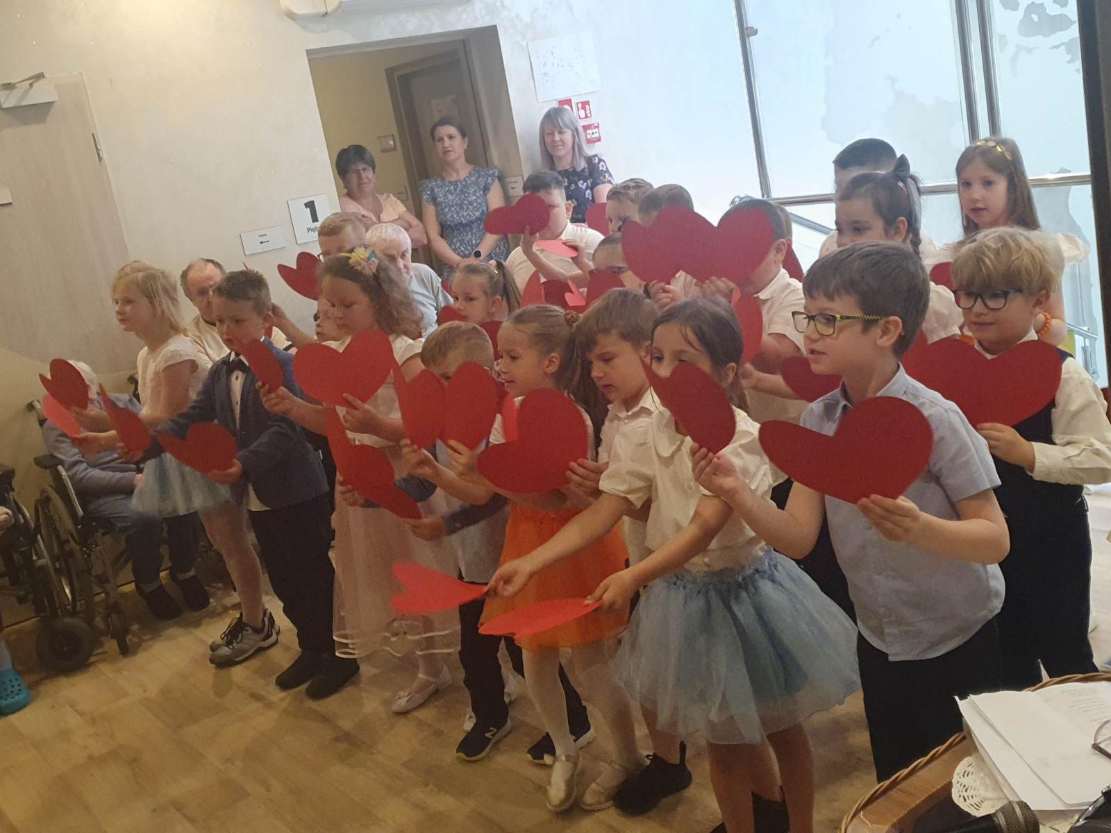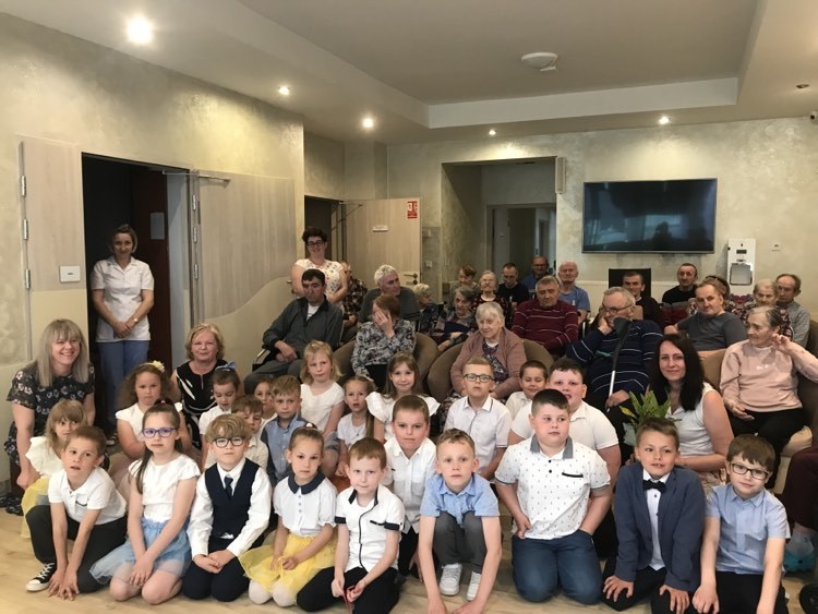 W dniu 1 czerwca dzieci z grupy Mądre sowy Przedszkola Publicznego w Wietrzychowicach odwiedziły pensjonariuszy Domu Pomocy Społecznej. W trakcie spotkania zaprezentowały program artystyczny przygotowany na Święto Rodziny. Złożyły się na niego wiersze, piosenki i tańce. Występ przedszkolaków został przyjęty przez słuchaczy bardzo ciepło, nagrodzony brawami oraz pysznymi słodyczami. Za umożliwienie zaprezentowania zdolności wokalnych i tanecznych dzieci, miłą atmosferę, radosne spędzenie czasu bardzo serdecznie dziękujemy.