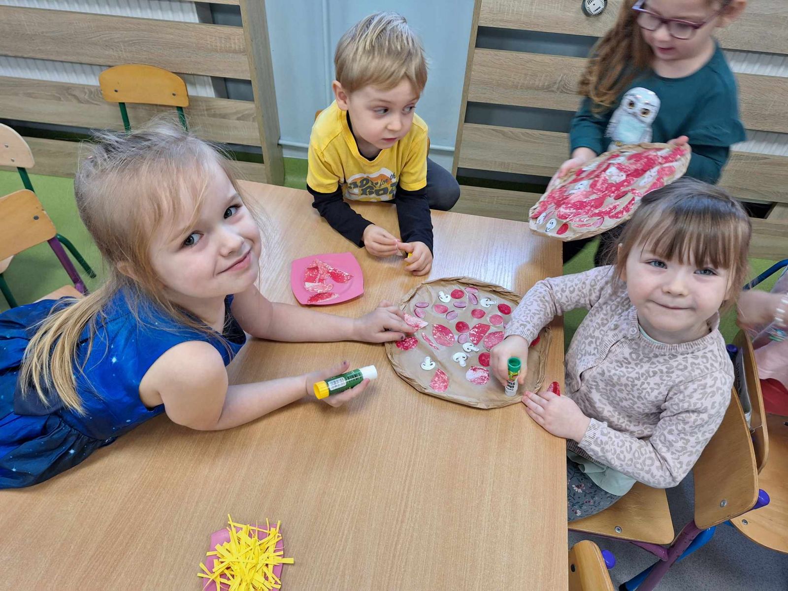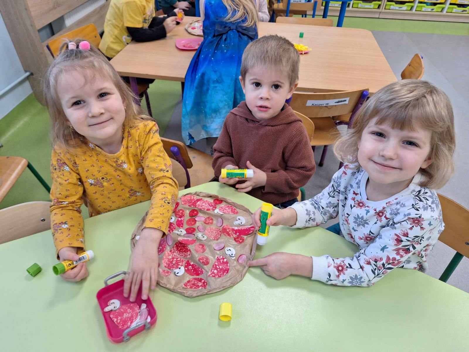 Obchodzony 9 lutego Dzień Pizzy w grupie Pszczółek był doskonałą okazją do tego, aby przedszkolaki poznały jej historię, kraj z którego pochodzi, a także składniki potrzebne do jej przygotowania. Dzieci miały możliwość stworzenia w grupach kolorowych, smakowicie wyglądających placków, używając do tego różnych produktów. Kulminacyjnym punktem było oczywiście zjedzenie przepysznej pizzy przygotowanej przez naszą panią kucharkę, której bardzo serdecznie dziękujemy. Dzień ten był zatem nie tylko edukacyjny, ale również bardzo, bardzo smaczny.