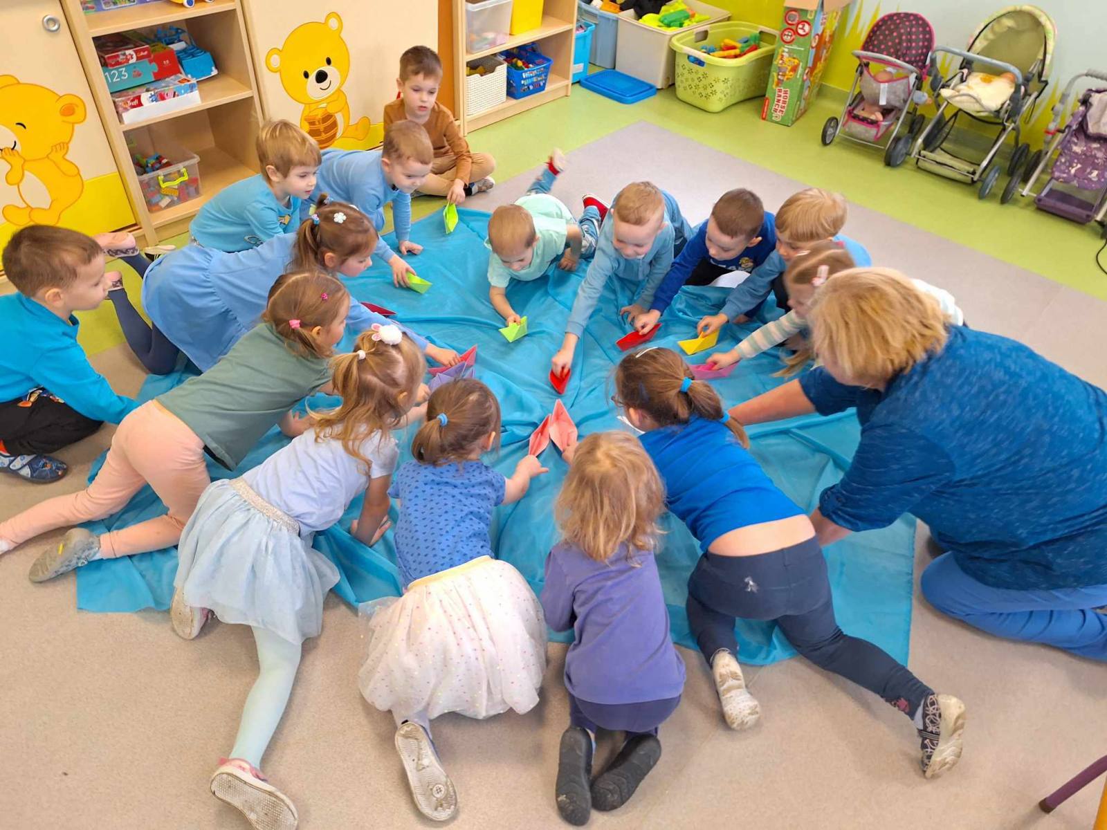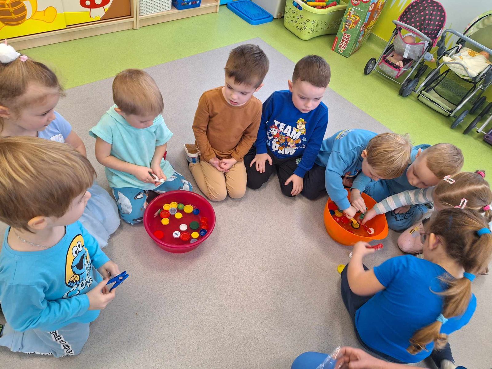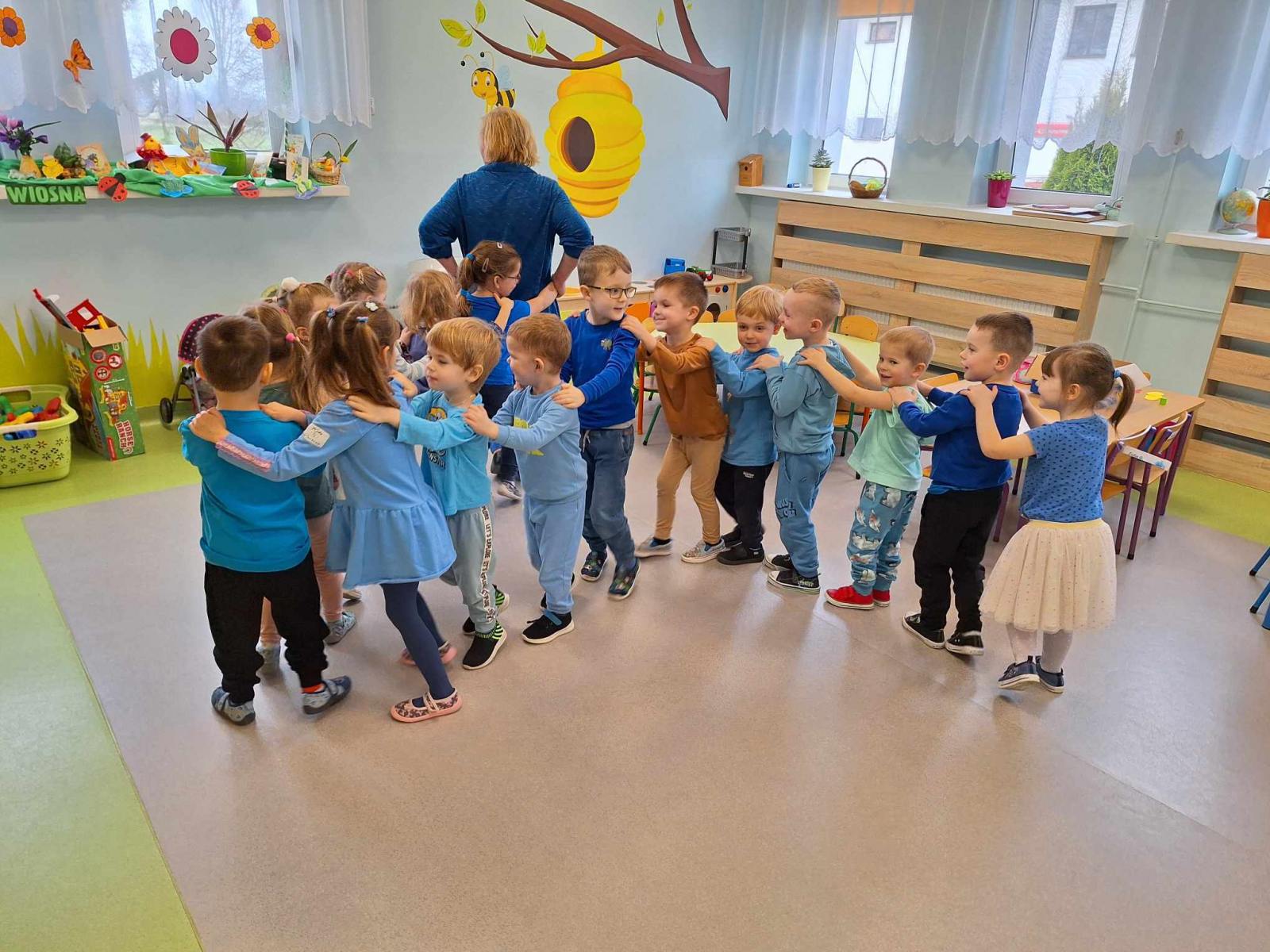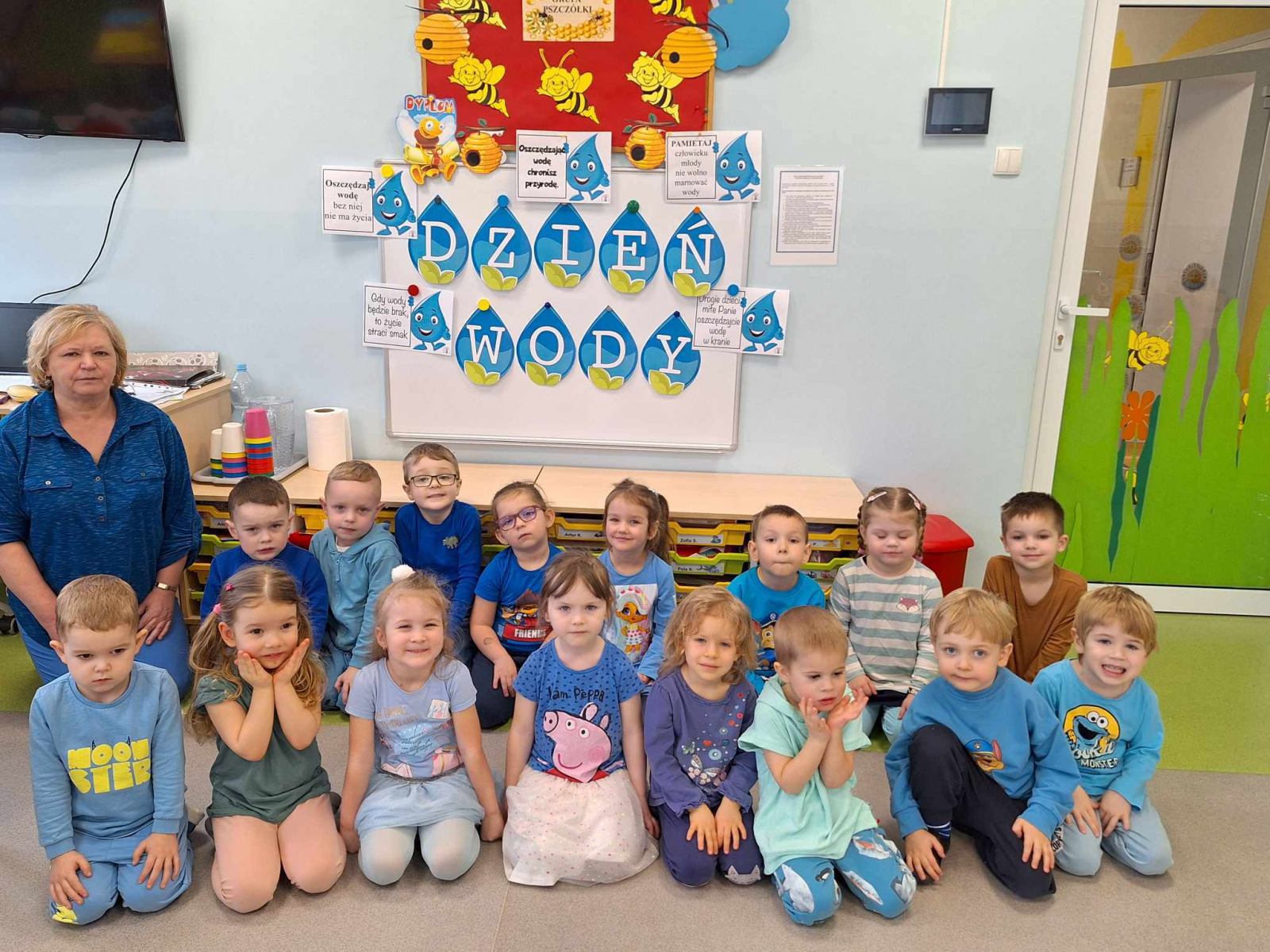 22 marca grupa Pszczółki świętowała Dzień Wody. W tym dniu wszystkie dzieci przyszły ubrane w kolorze niebieskim. Wspólnie odkrywaliśmy tajemnice wody i jej znaczenie w przyrodzie. Zajęcia edukacyjne połączyliśmy że świetną zabawą. Dzieci dowiedziały się jak woda krąży w przyrodzie i skąd bierze się deszcz.Na podstawie wysłuchanego wiersza opowiadały komu potrzebna jest woda. Z uwagą słuchały i samodzielnie układały hasła o wodzie. W czasie zabaw badawczych sprawdzały co pływa, a co tonie. Określały smak, zapach, kolor wody. Dzieci pływały łódką po jeziorze, łowły ryby w stawie. Przez naszą salę przepłynęła rzeka Wisła z piosenką ” Płynie Wisła, płynie”. Zabawy przyniosły dzieciom dużo radości i zadowolenia.