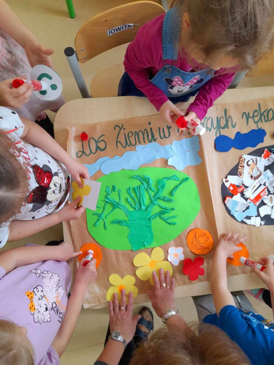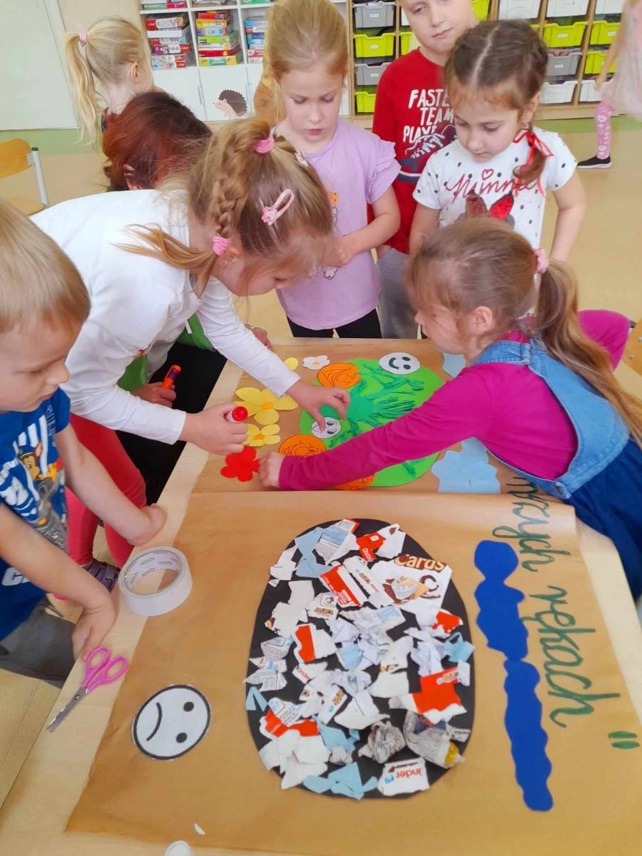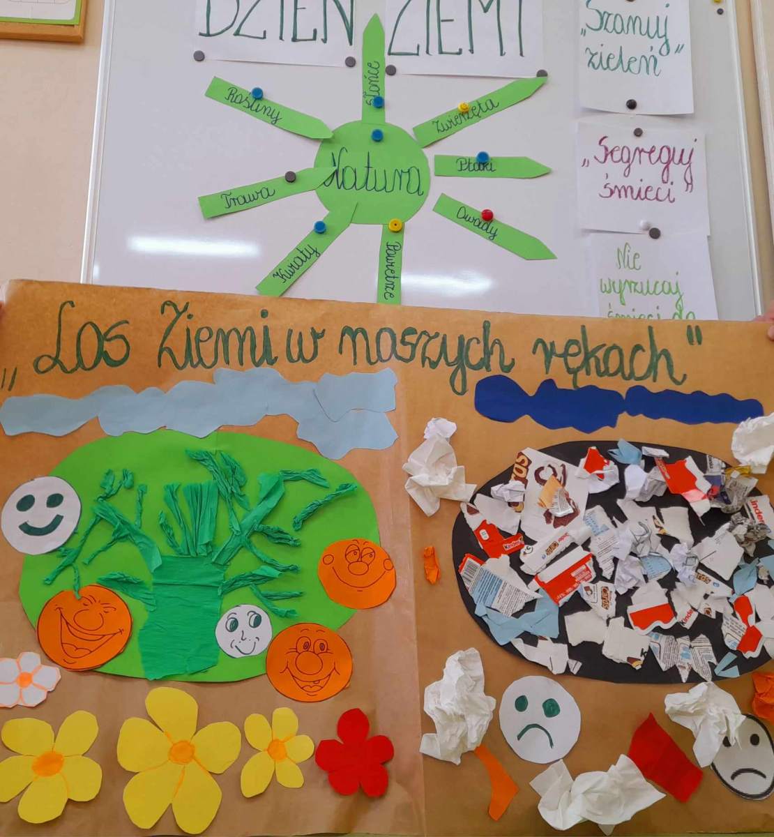 22 kwietnia Misie obchodziły Dzień Ziemi. Celem zajęć było kształtowanie świadomości ekologicznej, jak postępować, aby chronić środowisko naturalne. Przedszkolaki dowiedziały się podczas zajęć jakie niebezpieczeństwa grożą środowisku przyrodniczemu że strony człowieka. Wiedzą, że wszyscy musimy dbać o środowisko naturalne. Z tej okazji wykonały również plakat „Ziemia smutna, Ziemia wesoła”.