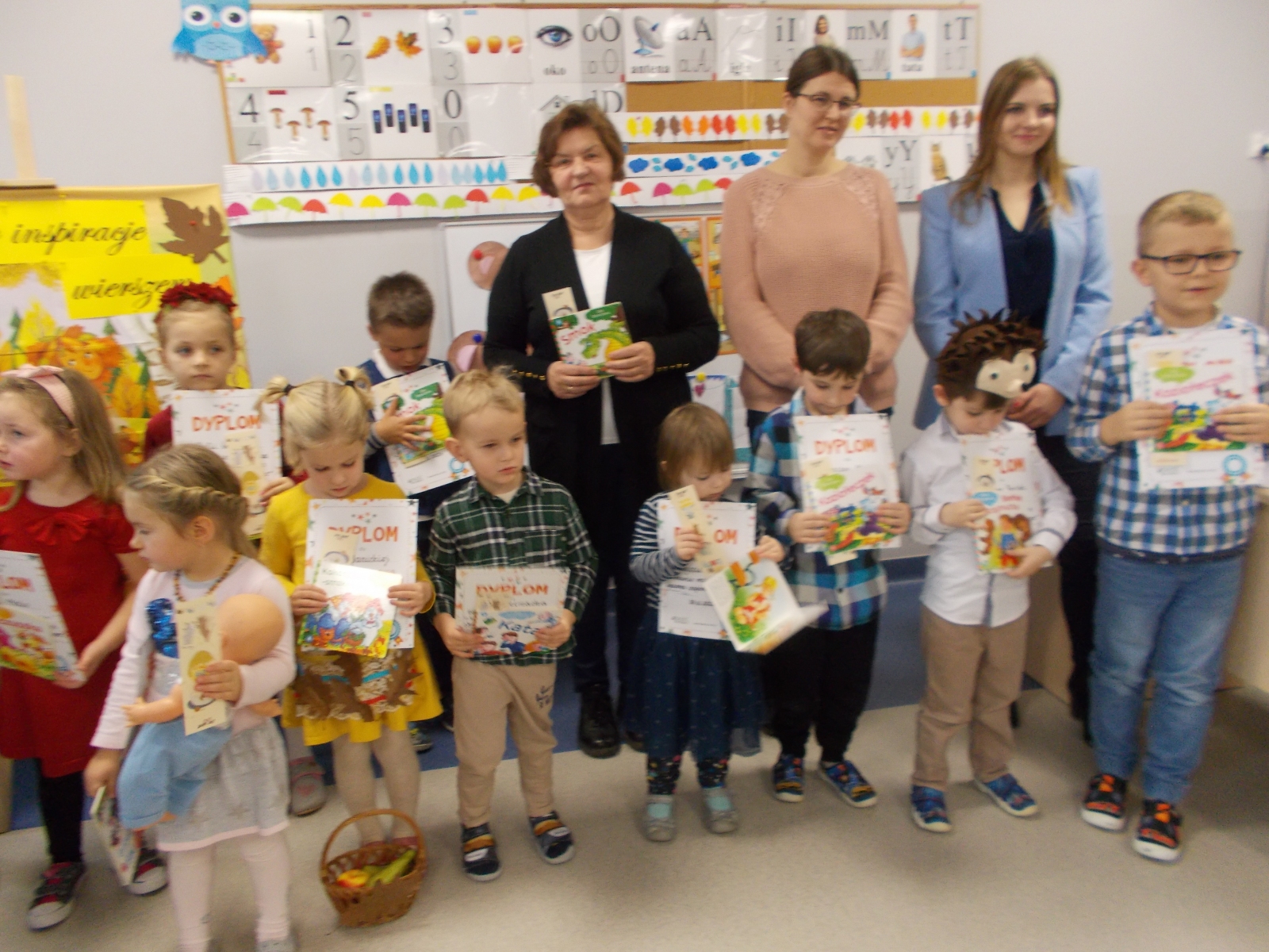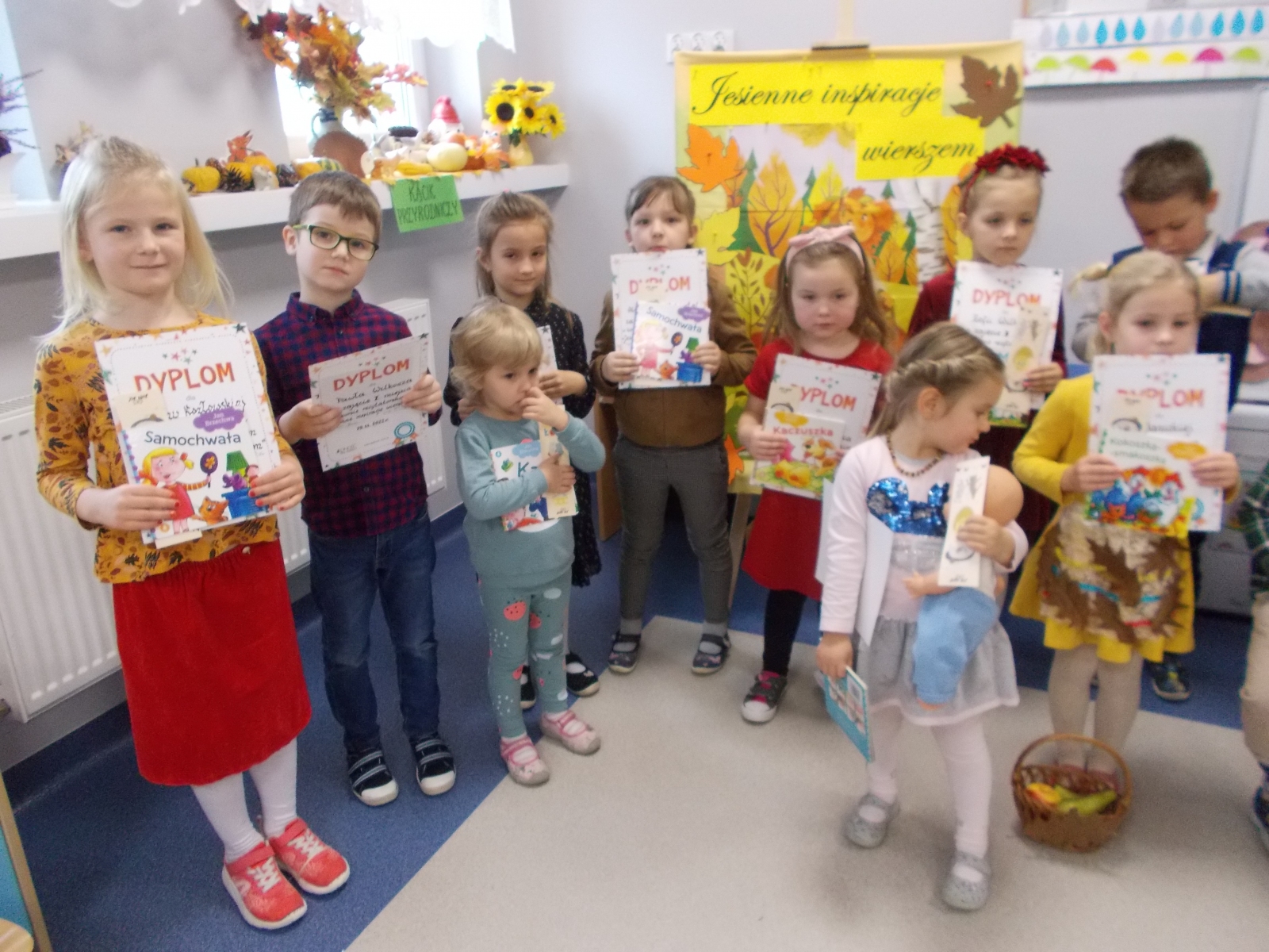 W dniu 29. 11. 2022 r. odbył się w przedszkolu wewnętrzny  konkurs  recytatorski „Jesienne inspiracje wierszem”. Wzięły w nim udział chętne dzieci w wieku 3 – 6 lat zarówno z przedszkola, jak też z oddziału  z Jadownik Mokrych. Piękną recytacją jesiennych wierszy popisało się 14 dzieci. Otrzymały za swoje popisy dyplomy pamiątkowe oraz nagrody rzeczowe.