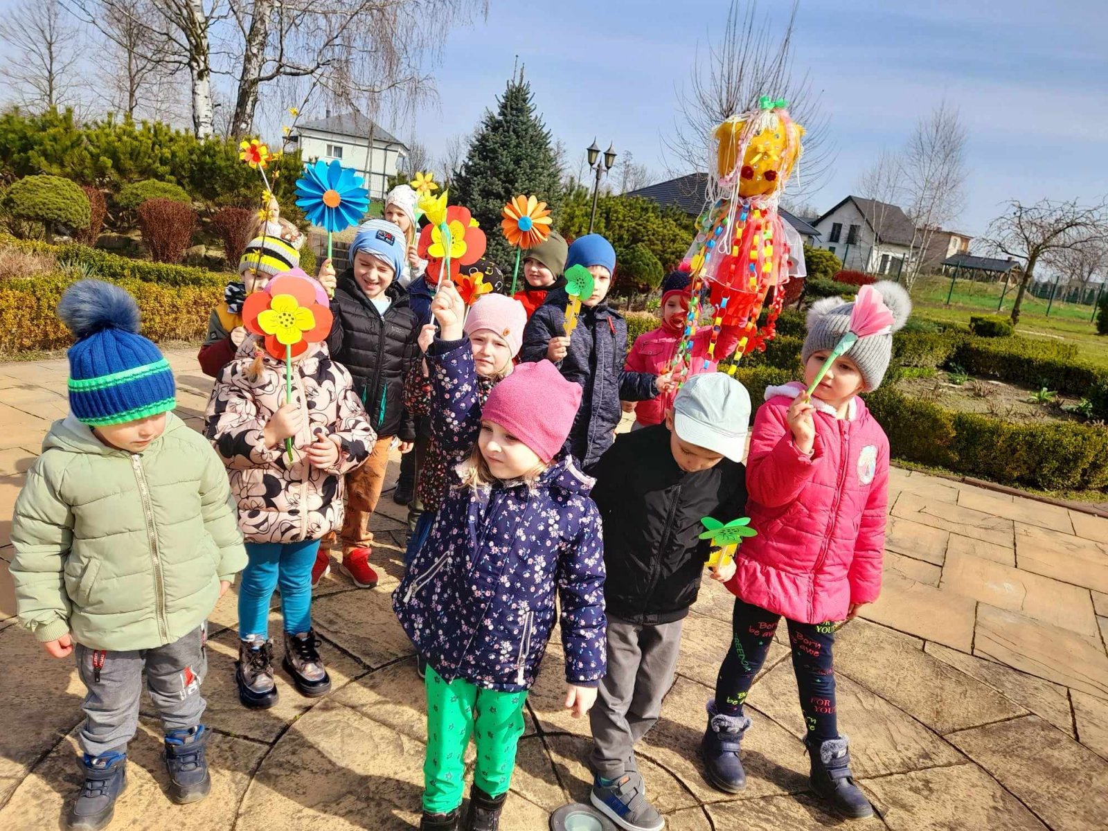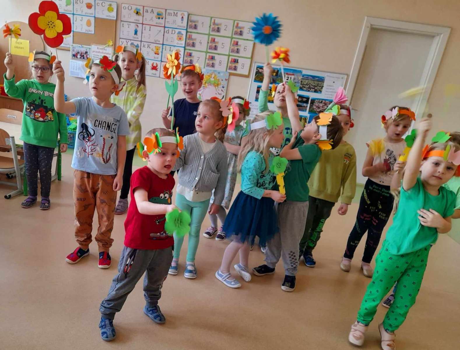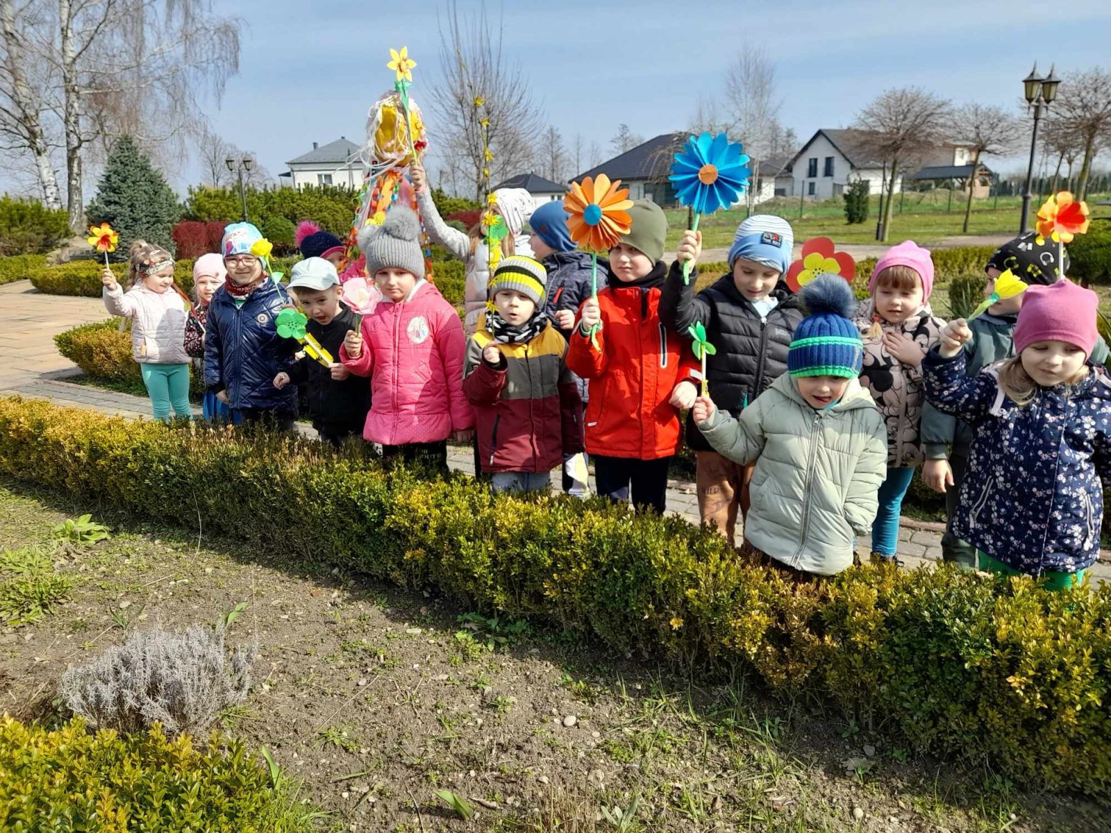 21 marca Misie wybrały się do ogrodów kwiatowych, aby powitać wiosnę. Wczęściej przygotowały kolorowe kwiaty i w barwnym korowodzie wybrały się na spotkanie z wiosną. Podczas zajęć w tym dniu poznały wybrane tradycje ludowe związane z nadejściem wiosny i pożegnaniem zimy. Zagadki słowne pozwoliły dzieciom na poznanie zwiastunów wiosny. Rozwijano wśród dzieci zainteresowania otaczającym środowiskiem przyrodniczym i zachodzącymi w nim zmianami.