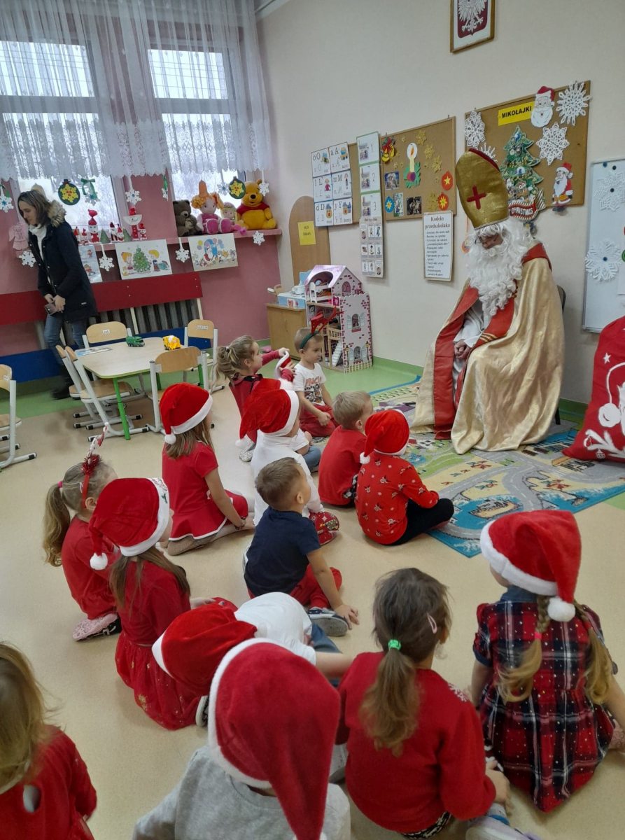 We wtorek 6 grudnia przedszkolaków z Jadownik Mokrych odwiedził św. Mikołaj. Obdarował wszystkie dzieci prezentami. Przedszkolaki przywitały gościa prezentując swoje umiejętności wokalne podczas śpiewania piosenek oraz recytatorskie. Podczas wizyty św. Mikołaj opowiedział dzieciom historie małego chłopca o imieniu Mikołaj. Dzieci w skupieniu słuchały opowieści. Wizyta Mikołaja dostarczyła dzieciom okazję do okazywania pozytywnych uczuć, radości z otrzymywania prezentów oraz obdarowywania nimi innych. Przedszkolaki podziękowały Mikołajowi i zaprosiły Go za rok.