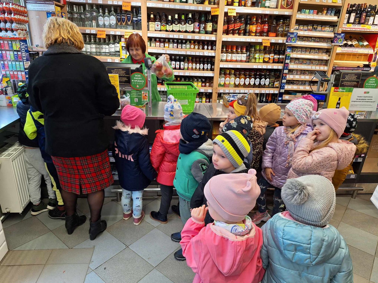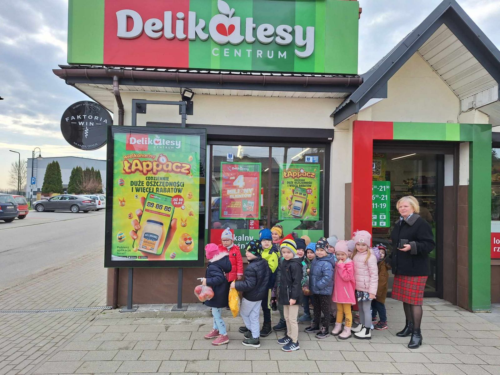 W ramach tematu kompleksowego ” Robimy zakupy w sklepie” grupa Pszczółki wybrała się do Delikatesów Centrum, znajdujących się w bliskim sąsiedztwie przedszkola. Dzieci miały możliwość zaobserwować na czym polega praca sprzedawcy. Przedszkolaki poznały różne rodzaje artykułów sprzedawanych w sklepie. Z zainteresowaniem oglądały wszystkie regały. Jednak największą uwagę skupiły na półce ze słodyczami. Grzeczne zachowanie dzieci zostało nagrodzone pysznymi cukierkami, które dostały od pracowników sklepu. Po zrobieniu drobnych zakupów udaliśmy się na spacer. Kierownikowi i pracownikom Delikatesów bardzo dziękujemy za umożliwienie wizyty w sklepie.