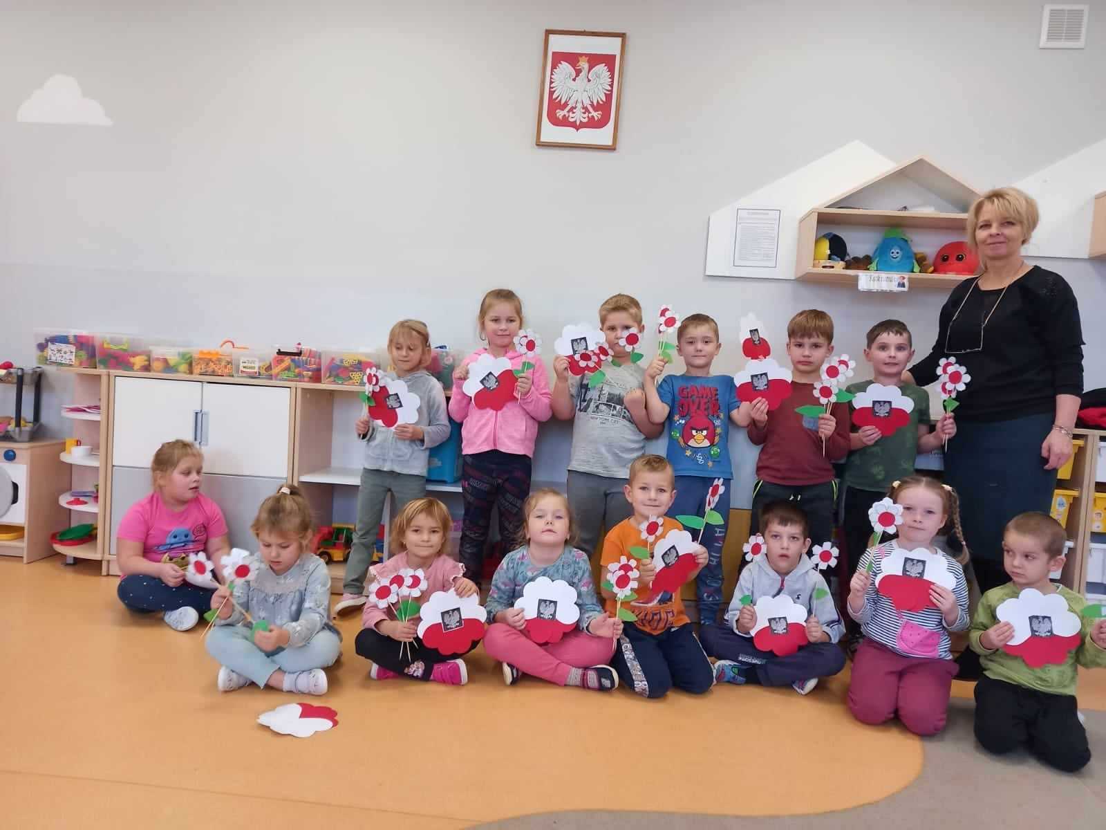 Z okazji zbliżającej się 105 rocznicy Odzyskania Niepodległości przez Polskę, Gminne Centrum Kultury w Wietrzychowicach pod czujnym okiem pani dyrektor Jadwigi Gorli przeprowadziło zajęcia plastyczne. Dzieci stworzyły piękne kwiaty w barwach narodowych oraz inne symbole tego święta. Przedszkolaki były dumne z siebie i ze swoich prac, chętnie prezentowały je do zdjęć.