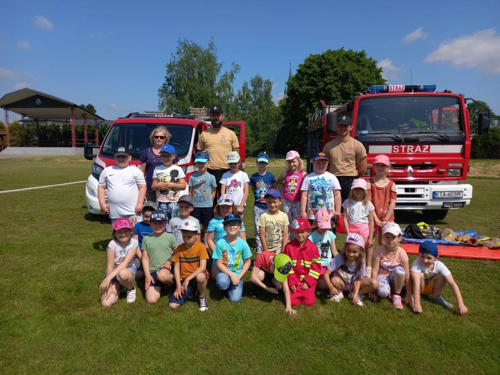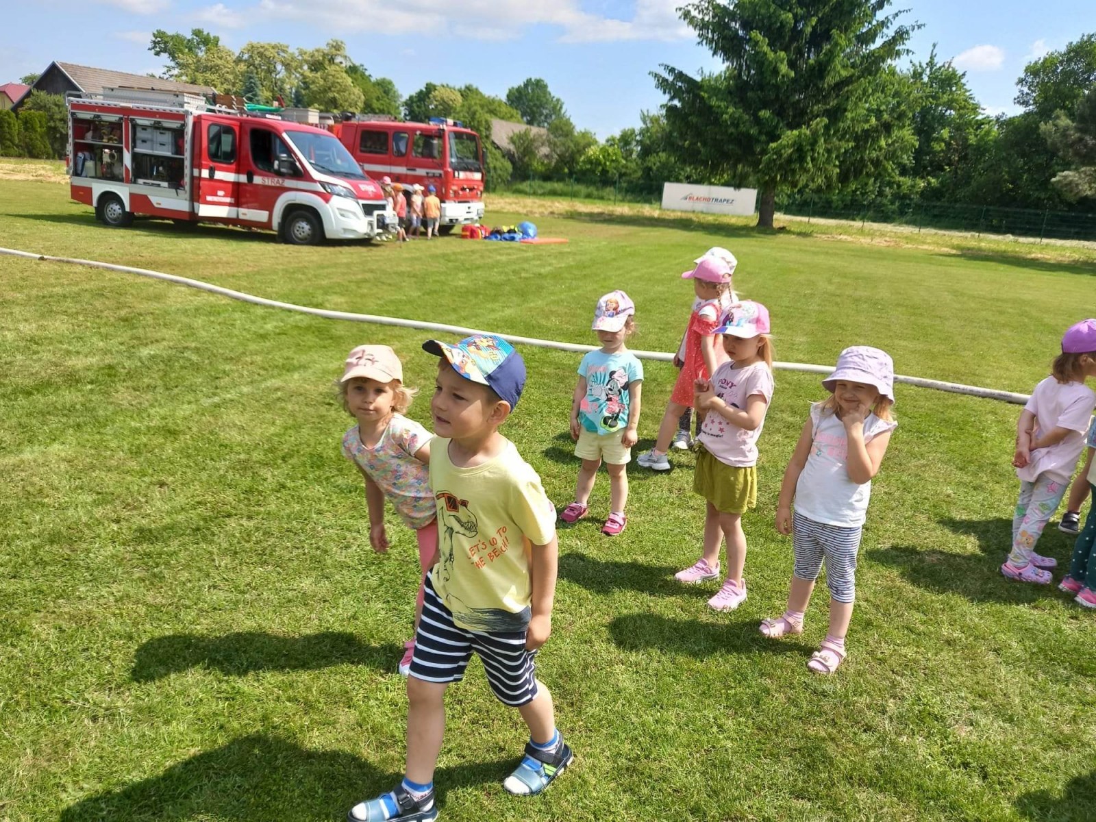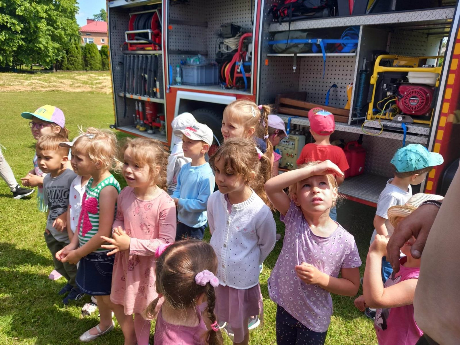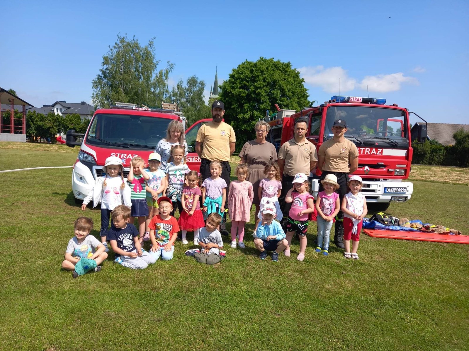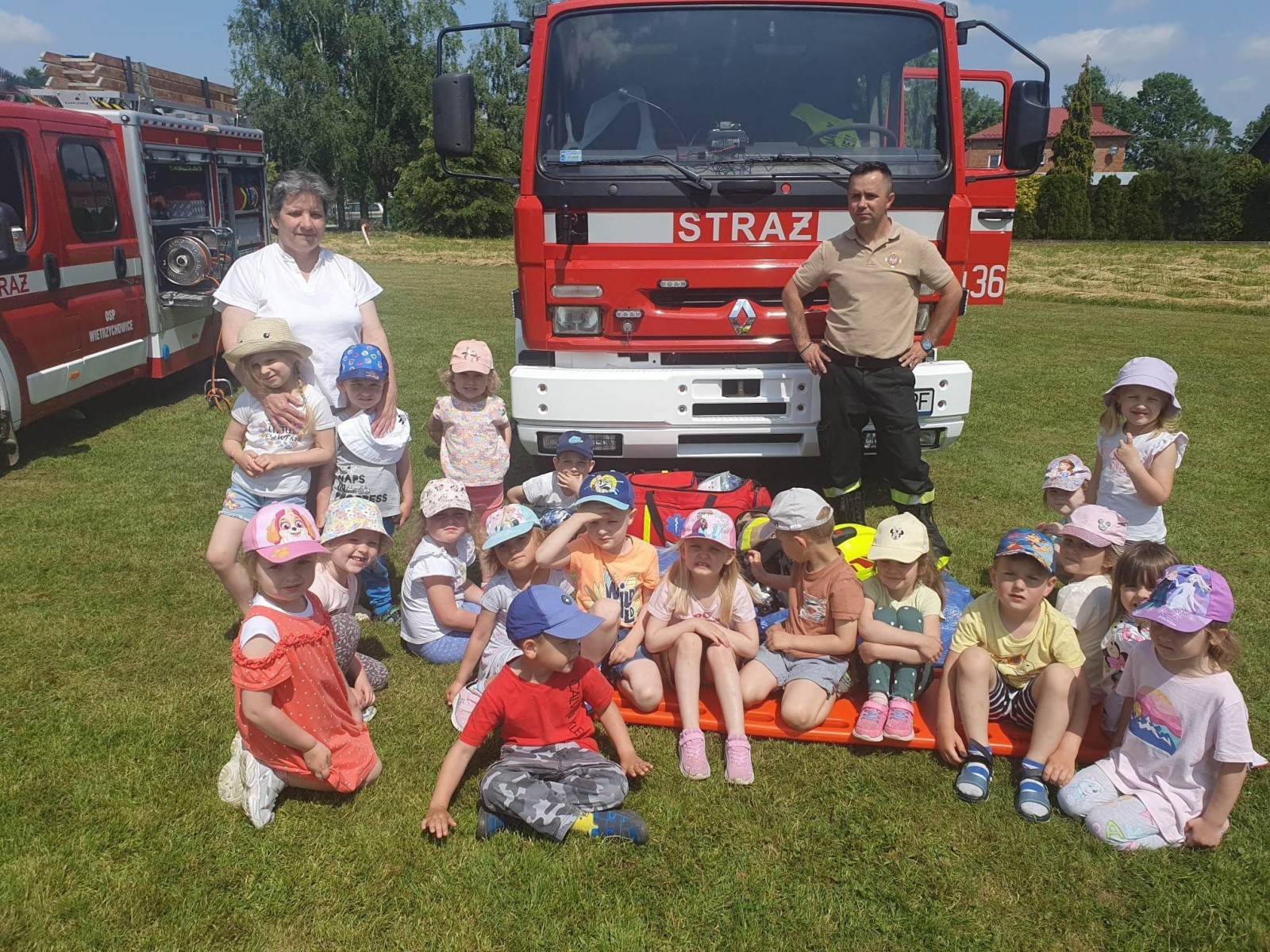 Nasze przedszkole odwiedzili niecodzienni goście z Ochotniczej Straży Pożarnej w Wietrzychowicach. Przedszkolaki z zachowaniem i wielkim zaciekawieniem uczestniczyli w spotkaniu, podczas którego mogły poznać pracę strażaków, umundurowanie oraz niektóre sprzęty jakimi dysponują. Dzieci dowiedziały się, że strażacy nie tylko gaszą pożary, ale również są wzywani do wypadków samochodowych, do zalanych domów, powalonych drzew, a także ratują zwierzęta. Podczas spotkania strażacy uświadomili dzieciom jak zachowywać się w sytuacjach zagrożenia, oraz jak powiadomić służby ratownicze i udzielić pierwszej pomocy. Wielką radość przedszkolakom sprawiło obejrzenie z bliska wozu strażackiego oraz zapoznania się z jego wyposażeniem. Wszystkie dzieci mogły wypróbować swoich sił i zmierzyć się z prawdziwym wężem strażackim. Na zakończenie spotkania ” Pszczółki „, „Promyczki”, „Mądre Sowy „, „Misie ” podziękowały strażakom i życzyły wytrwałości w codziennej pracy.