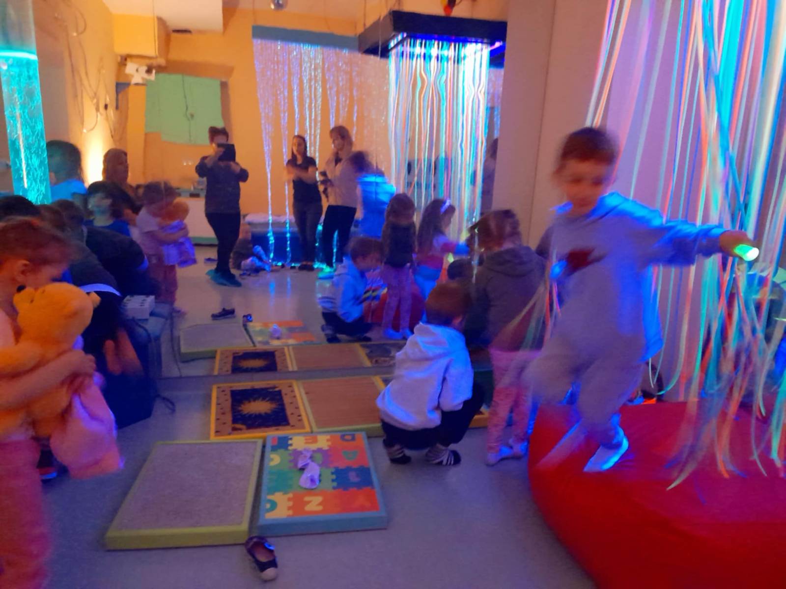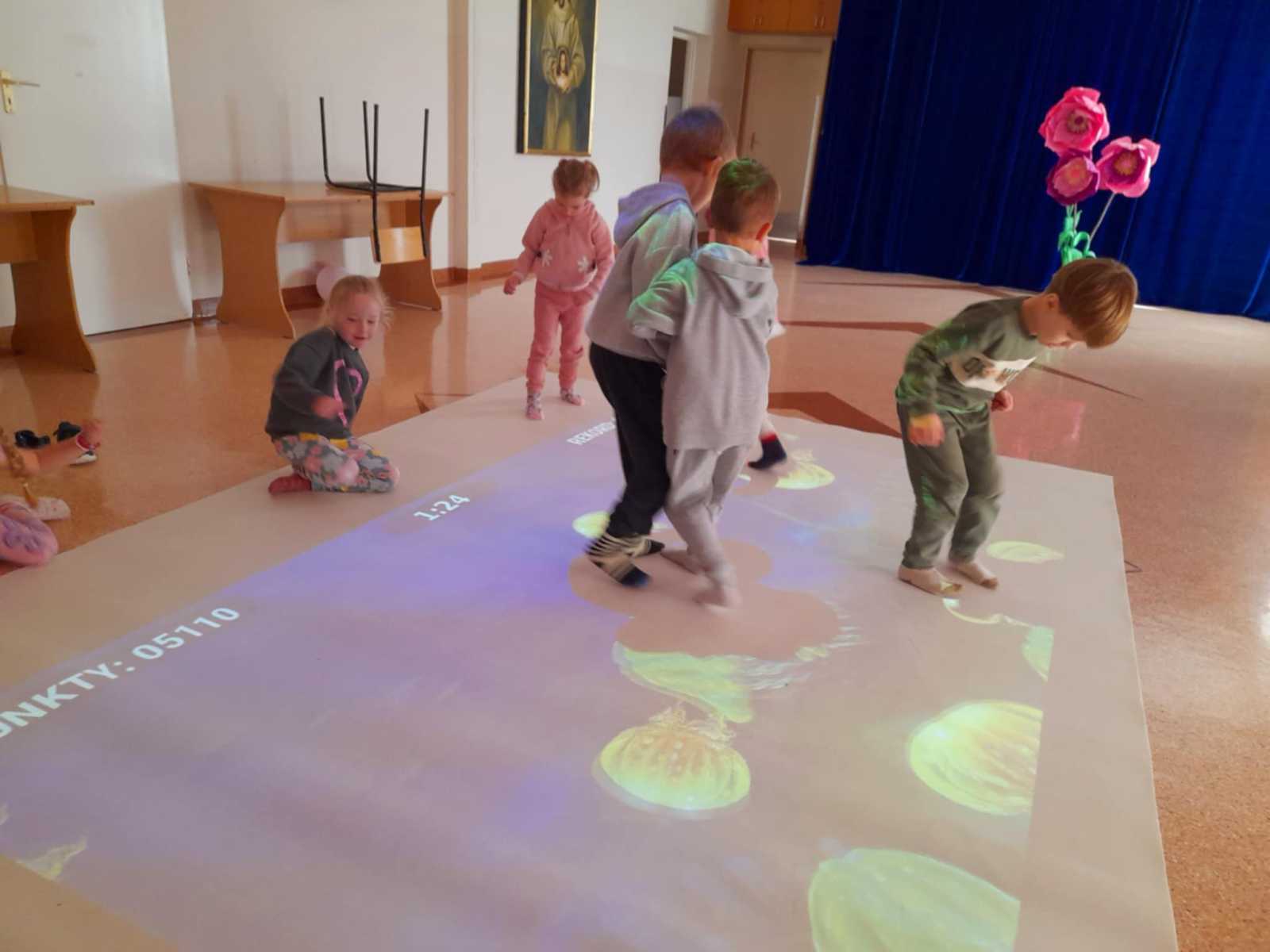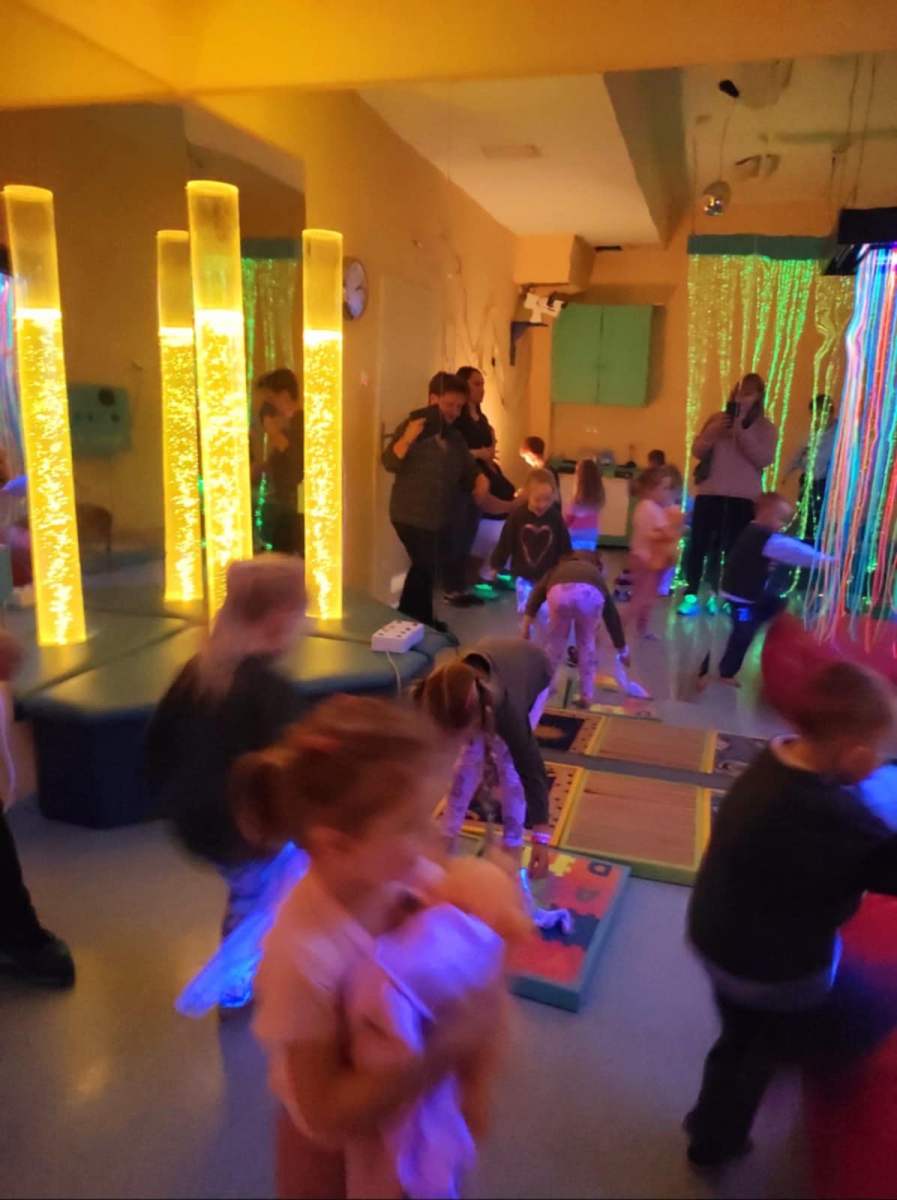 W piątek przedszkolaki z grupy Misie udały się do Ośrodka Rehabilitacji w Jadownikach Mokrych. Podczas pobytu skorzystały z „magicznego dywanu” oraz z „pokoju doświadczeń”. Magiczny dywan to interaktywna podłoga łącząca w sobie multimedia z aktywnością ruchową, ale przede wszystkim atrakcyjna pomoc dydaktyczna z bogatą ofertą gier i zabaw. Zabawy na dywanie wyzwalały wśród dzieci dużo radości, uśmiechu oraz pozytywnych emocji. Pani Gosia zaprosiła nas również do „pokoju doświadczeń” czyli sali wyposażonej w urządzenia stymulujące rozwój zmysłów. Za pośrednictwem efektów świetlnych pobudzone były podstawowe zmysły dziecka. W przyjemnej atmosferze, pełnej akceptacji i relaksu dzieci same wybierały bodźce, których w danej chwili potrzebowały. Dziękujemy ks. Markowi za miłe przyjęcie i pani Gosi za super spędzone chwile.