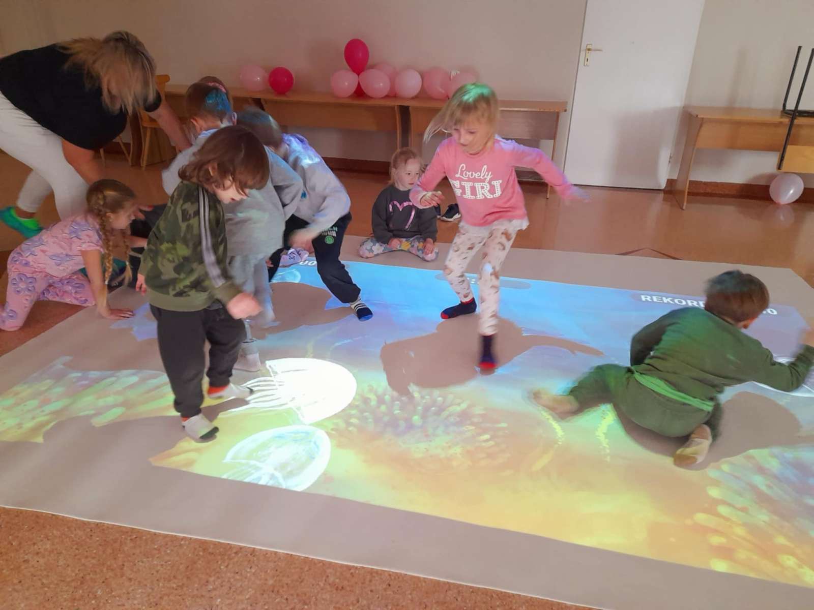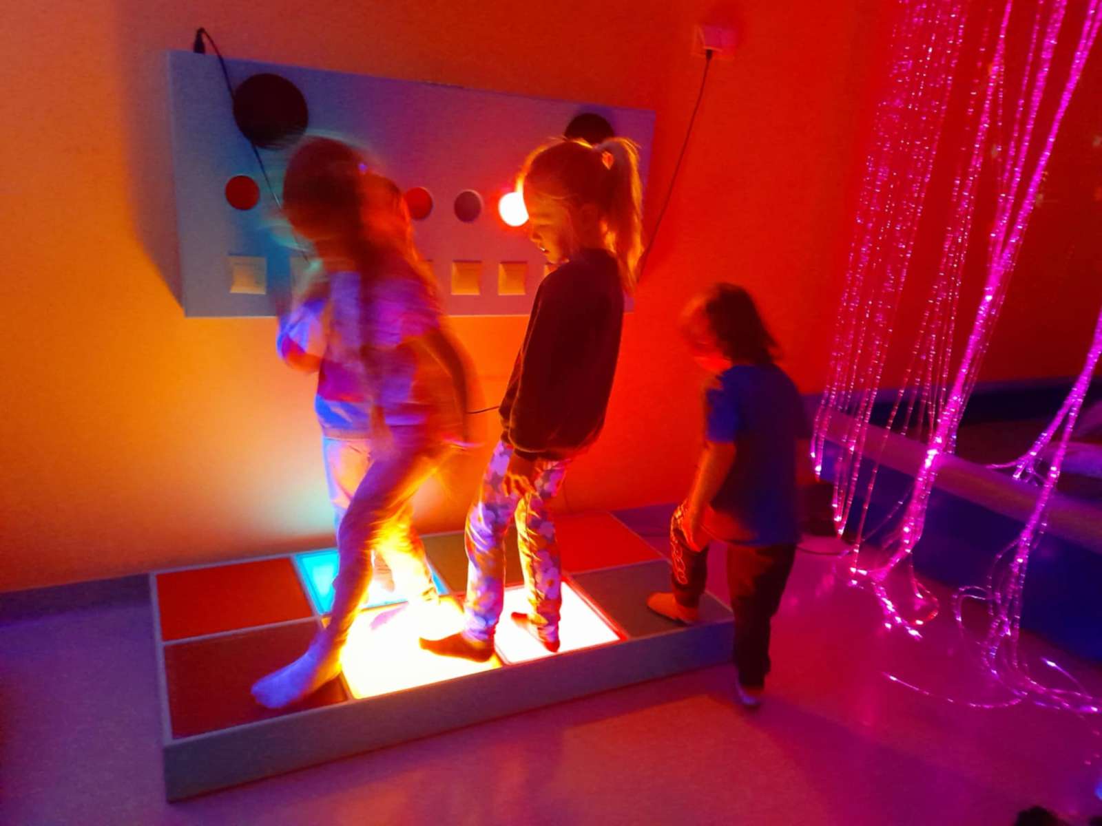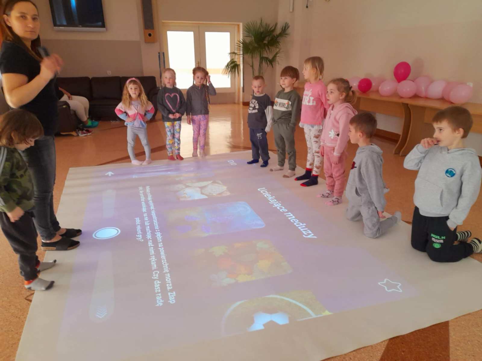 W piątek przedszkolaki z grupy Misie udały się do Ośrodka Rehabilitacji w Jadownikach Mokrych. Podczas pobytu skorzystały z „magicznego dywanu” oraz z „pokoju doświadczeń”. Magiczny dywan to interaktywna podłoga łącząca w sobie multimedia z aktywnością ruchową, ale przede wszystkim atrakcyjna pomoc dydaktyczna z bogatą ofertą gier i zabaw. Zabawy na dywanie wyzwalały wśród dzieci dużo radości, uśmiechu oraz pozytywnych emocji. Pani Gosia zaprosiła nas również do „pokoju doświadczeń” czyli sali wyposażonej w urządzenia stymulujące rozwój zmysłów. Za pośrednictwem efektów świetlnych pobudzone były podstawowe zmysły dziecka. W przyjemnej atmosferze, pełnej akceptacji i relaksu dzieci same wybierały bodźce, których w danej chwili potrzebowały. Dziękujemy ks. Markowi za miłe przyjęcie i pani Gosi za super spędzone chwile.