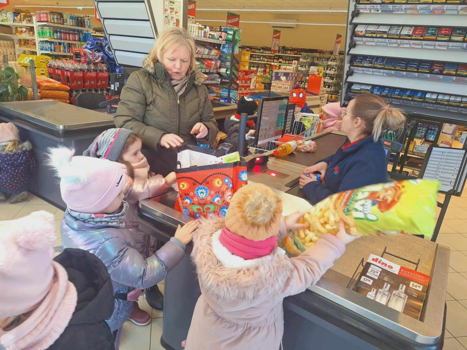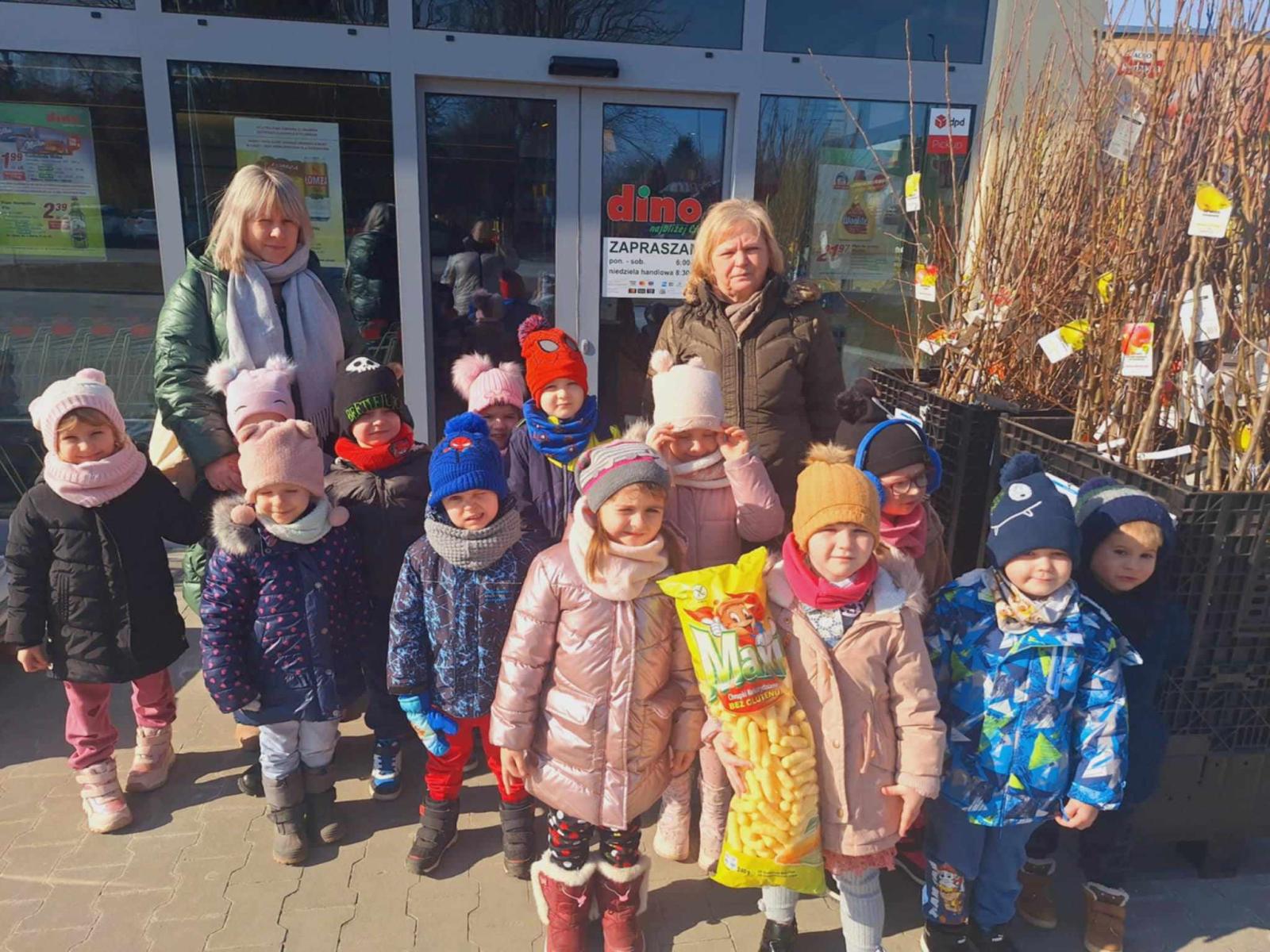 W piątek 21 lutego dzieci z grupy Promyczki Przedszkola Publicznego w Wietrzychowicach w ramach realizacji tematu kompleksowego „Robimy zakupy w sklepie” wybrały się do Dino.Głównym celem wycieczki było zapoznanie ich z pracą ekspedientki, kasjerki oraz wyposażeniem sklepu. Dzieci z dużym zainteresowaniem oglądały zapełnione różnymi towarami półki, regały, lodówki. Zrobiły drobne zakupy. Na pamiątkę wizyty wręczyły pani kierowniczce laurkę. Dzień ten był dla przedszkolaków okazją do nauki pożądanych społecznie zachowań i podstawowych czynności niezbędnych w ich przyszłym życiu. Wizyta w sklepie była bardzo interesująca i pouczającą. Za miłe przyjęcie, profesjonalną obsługę i poświęcony czas bardzo dziękujemy pracownikom sklepu Dino.