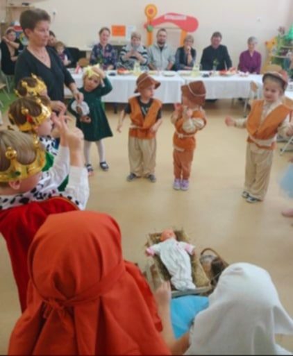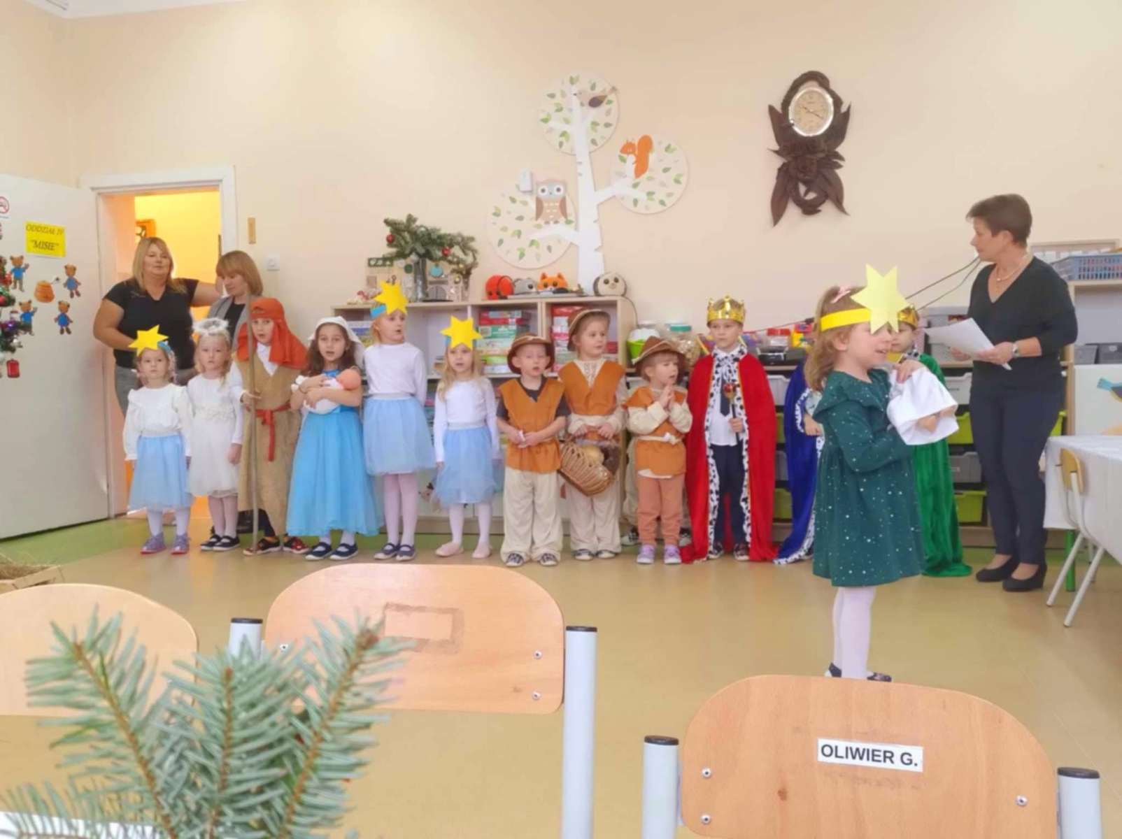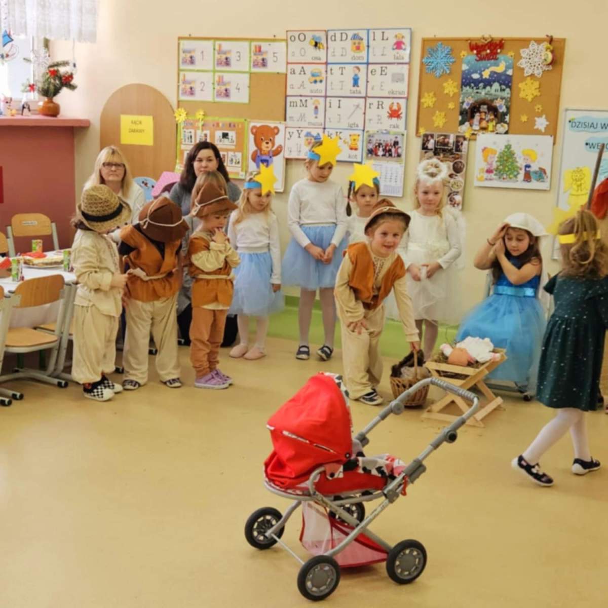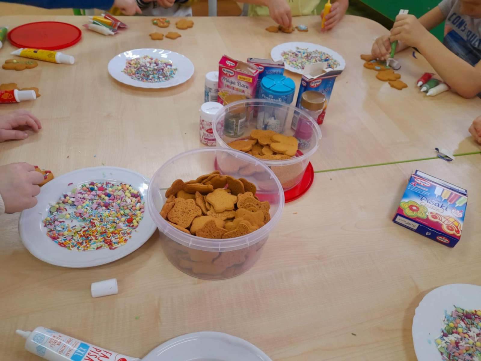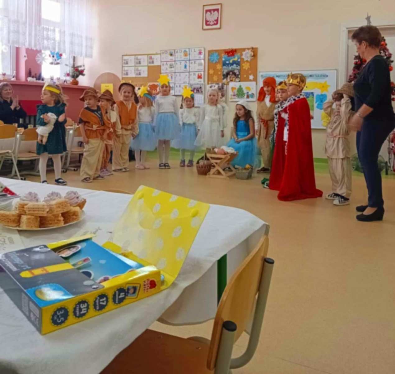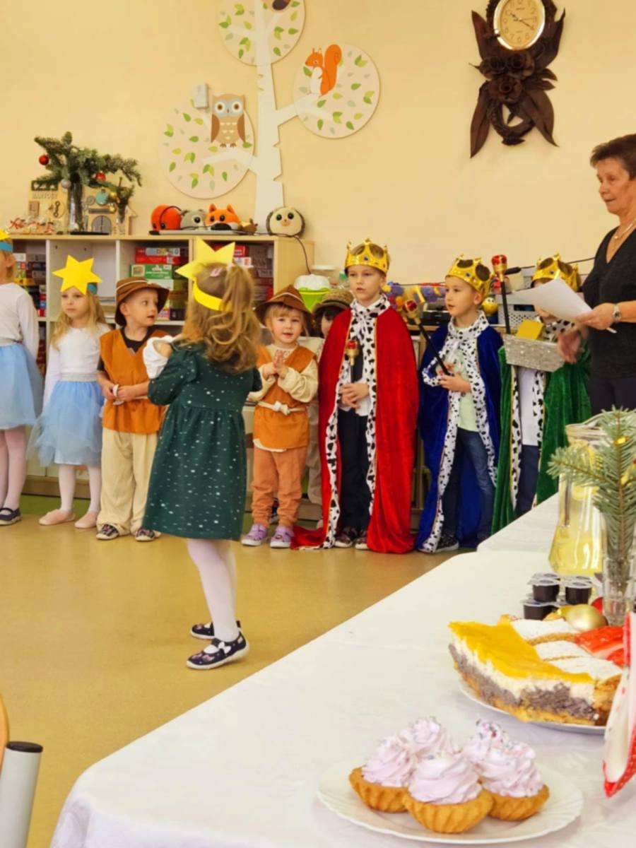 W środę Misie obchodziły swoją Wigilię. Wcześniej dekorowały ciasteczka, którymi częstowały się w czasie wigilii. W ten dzień po śniadaniu zaczęły się przygotowania. Na stole pojawił się bialy obrós, świece, sianko, opłatek, pismo św. oraz poczęstunek dla gości. W uroczystości wzięli udział zaproszeni goście: Dyrekcja ZSP, przedstawiciele Klubu Seniorów z Jadownik Mokrych oraz rodzice dzieci. Uroczystość poprowadził ksiądz B. Walerowski. Po występie przedszkolaków łamano się opłatkiem, składano sobie życzenia oraz śpiewano wspólnie kolędy. Podczas Wigilii panowała miła I ciepła atmosfera.