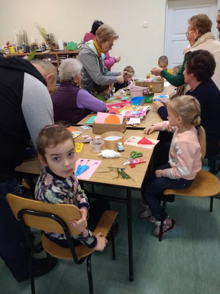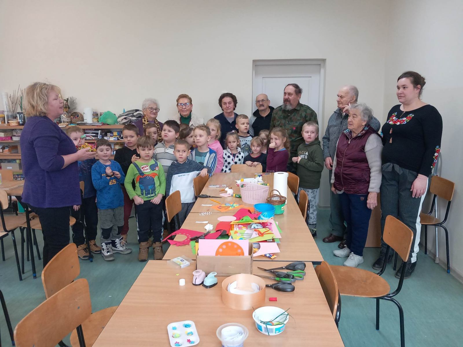 18 stycznia dzieci z grupy „Mądre sowy” Przedszkola Publicznego w Wietrzychowicach wybrały się z wizytą do Klubu Seniora „Radosna Przystań” w Miechowicach Wielkich. Celem spotkania było uczestnictwo przedszkolaków w zajęciach plastycznych. Dzieci pod kierunkiem seniorów wykonały piękne laurki dla swoich babć i dziadków z okazji zbliżającego się ich święta. To niezwykle przyjemne, a zarazem pożyteczne spotkanie zakończyło się wspólną fotografią i słodkim poczęstunkiem.