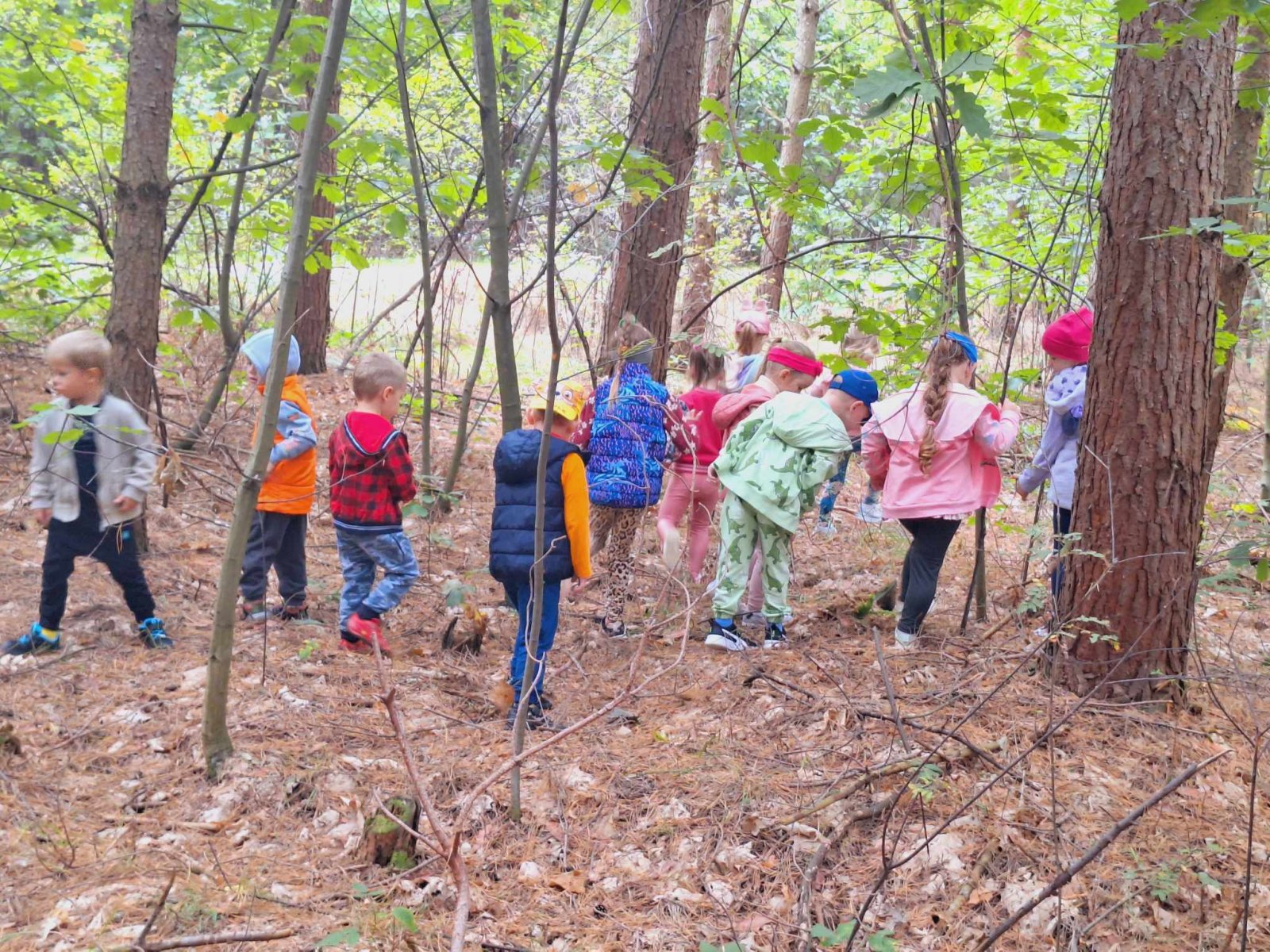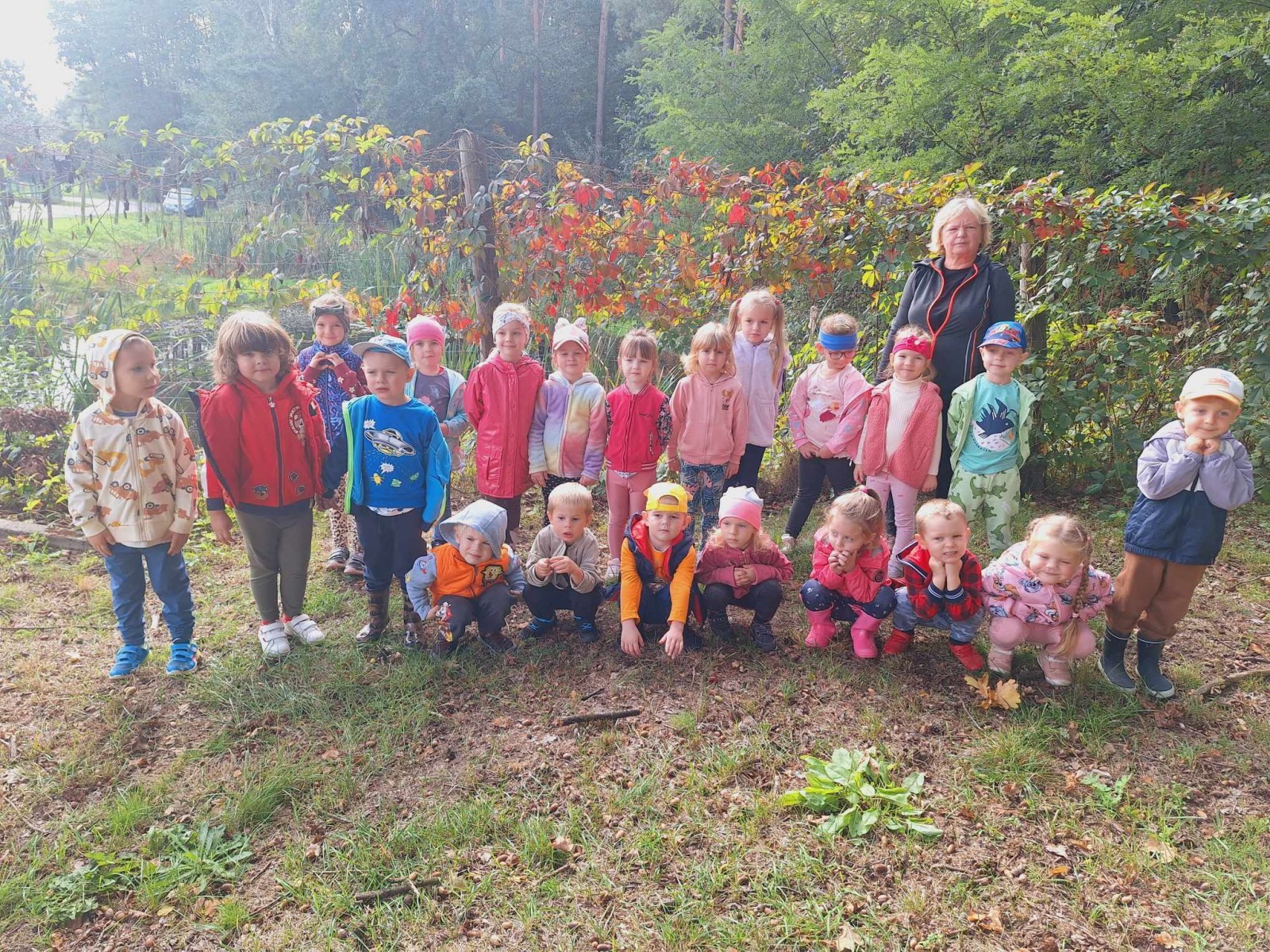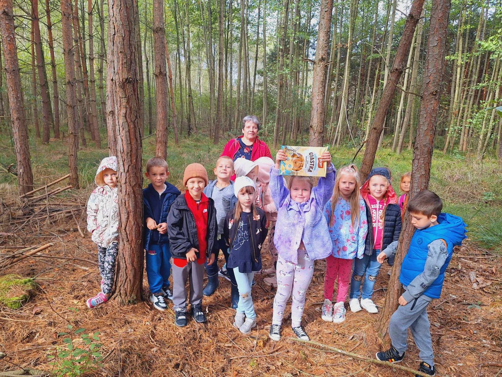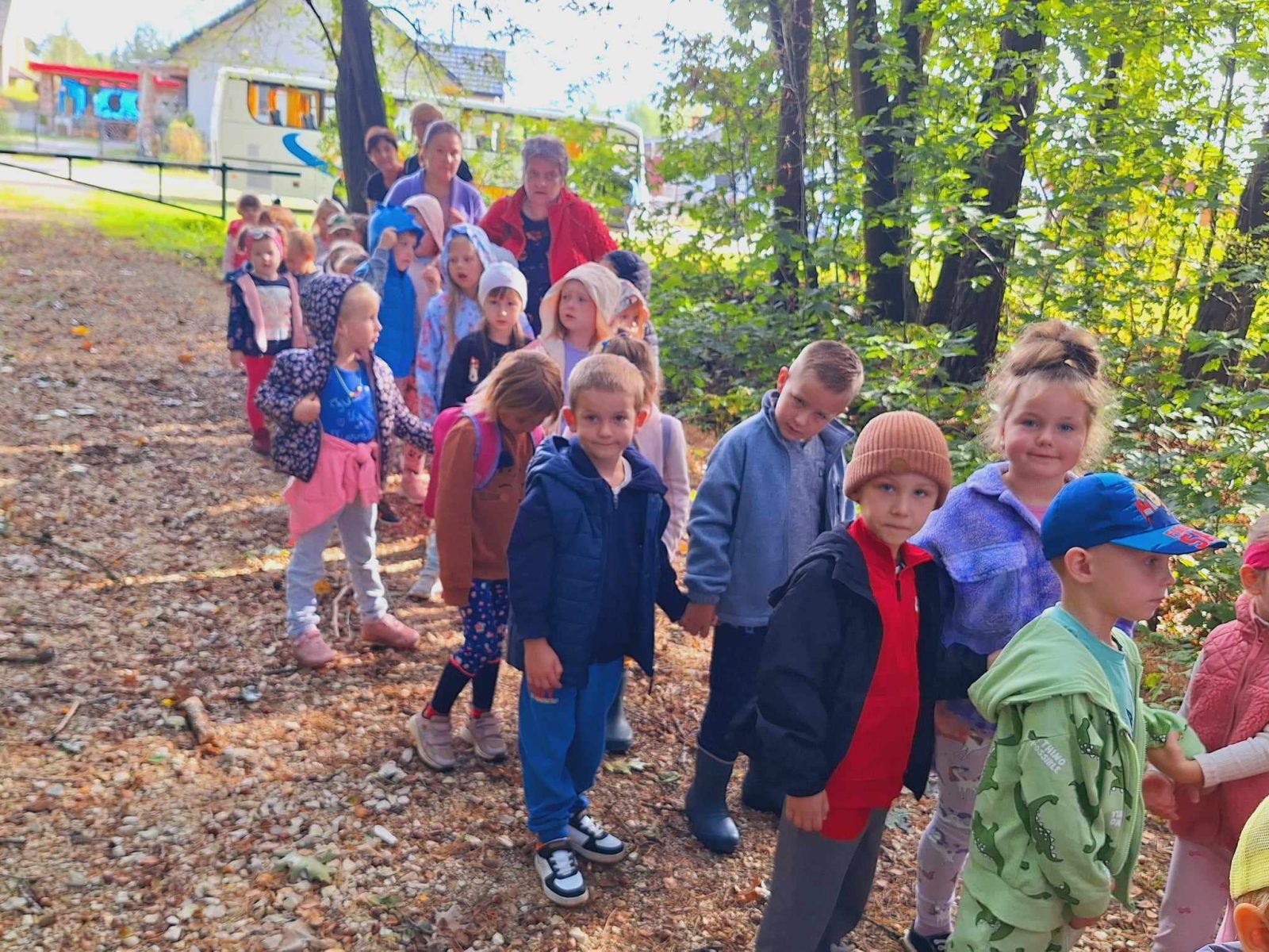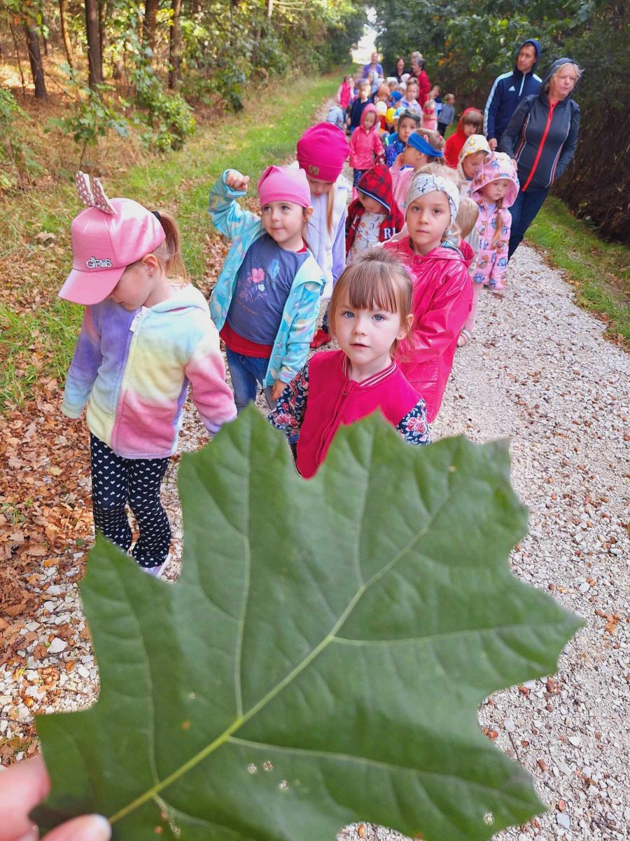 W czwartek 26 września dzieci z 3 grup Przedszkola Publicznego w Wietrzychowicach: Pszczółek, Promyczków i Mądrych sów wybrały się autobusem szkolnym na wycieczkę do lasu w Jadownikach Mokrych w poszukiwaniu śladów jesieni. Przedszkolaki z uwagą poznawały naturalny świat roślin i zwierząt w środowisku leśnym patrząc, słuchając i dotykając. Obserwowały warstwy lasu, rozróżniały i nazywały drzewa liściaste i iglaste. Słuchały śpiewu ptaków. Do kącików przyrodniczych zbierały dary lasu; głównie szyszki, żołędzie, mchy i paprocie. Podczas zabawy tropiącej udało im się odnaleźć niespodziankę- kruche ciasteczka, które z apetytem zjadły po wyjściu z lasu. Dzieci podczas wycieczki uczyły się prawidłowego zachowania w lesie. Poznały znaczenie lasu dla ludzi i zwierząt, w tym walory zdrowotne. Przedszkolaki miło spędziły czwartkowe przedpołudnie na świeżym, czystym powietrzu w otoczeniu pięknej, malowniczej przyrody leśnej. Wszyscy w radosnych nastrojach powrócili do przedszkola.
