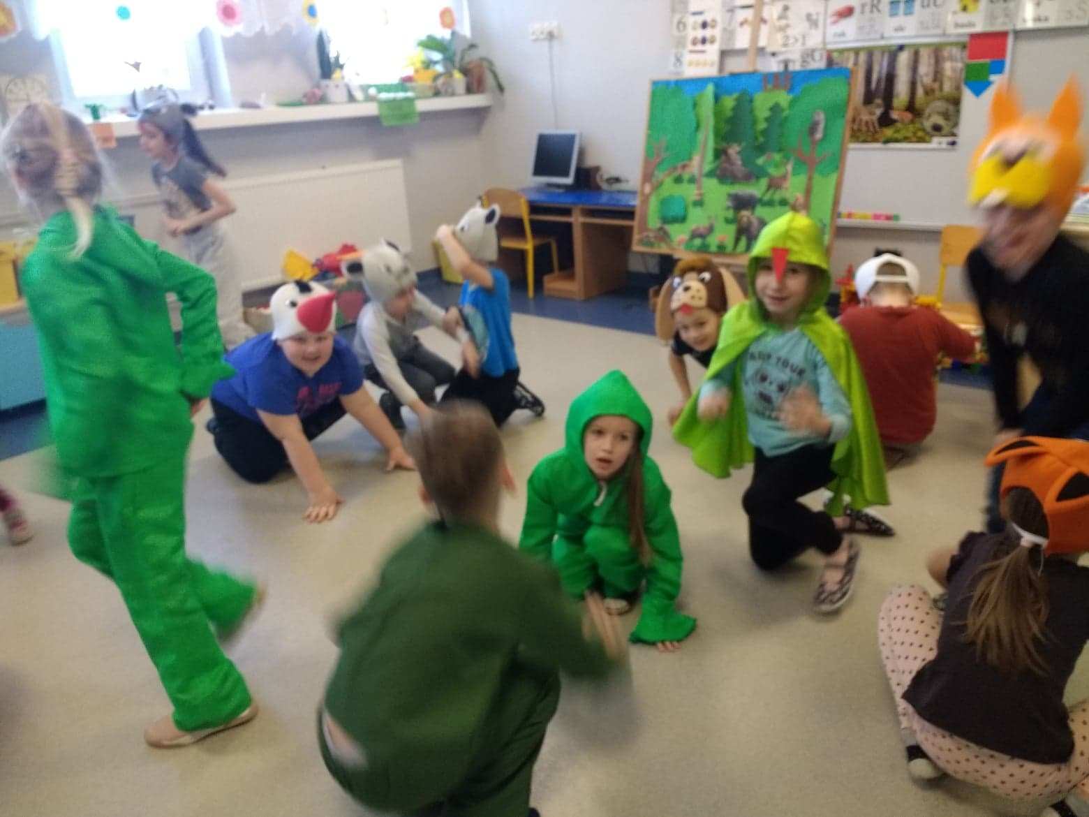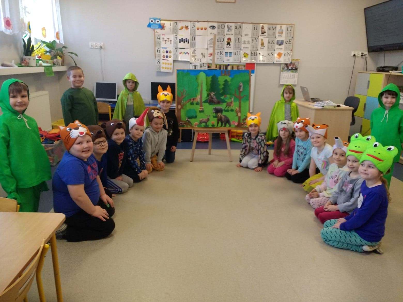 W piątek 17 marca sala „Mądrych sów” zamieniła się w „Zaczarowany las”. Dzieci przebrane za drzewa i zwierzęta leśne uczestniczyły w zajęciach literackich, muzycznych, ruchowych. Głównym ich celem było poznanie tajemnic lasu oraz kształtowanie wrażliwości na naturalne piękno i zasobność lasu. Wspólne sytuacje zabawowo- zadaniowe przyniosły dzieciom wiele wrażeń i dużo radości.